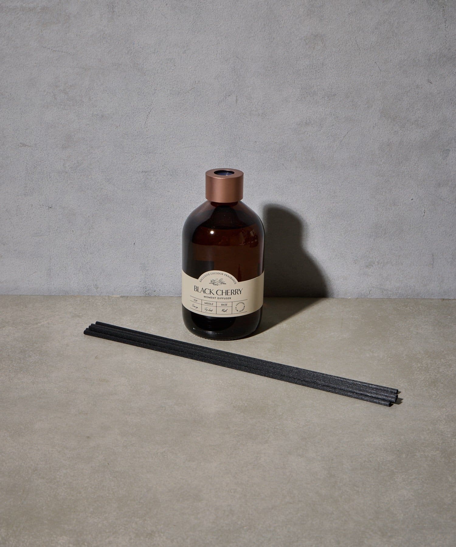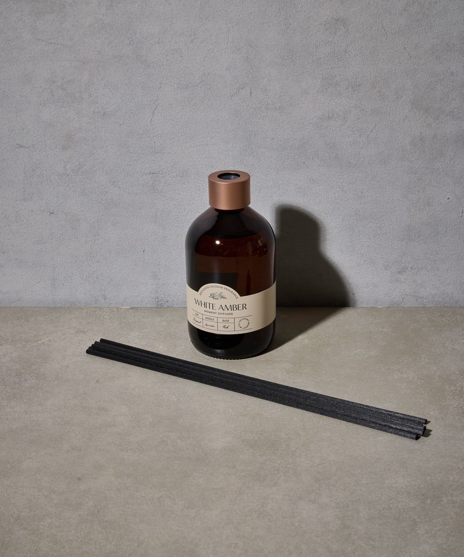 マットなキャップと重厚感のあるアンバーボトルが高級感を漂わせるディフューザー。