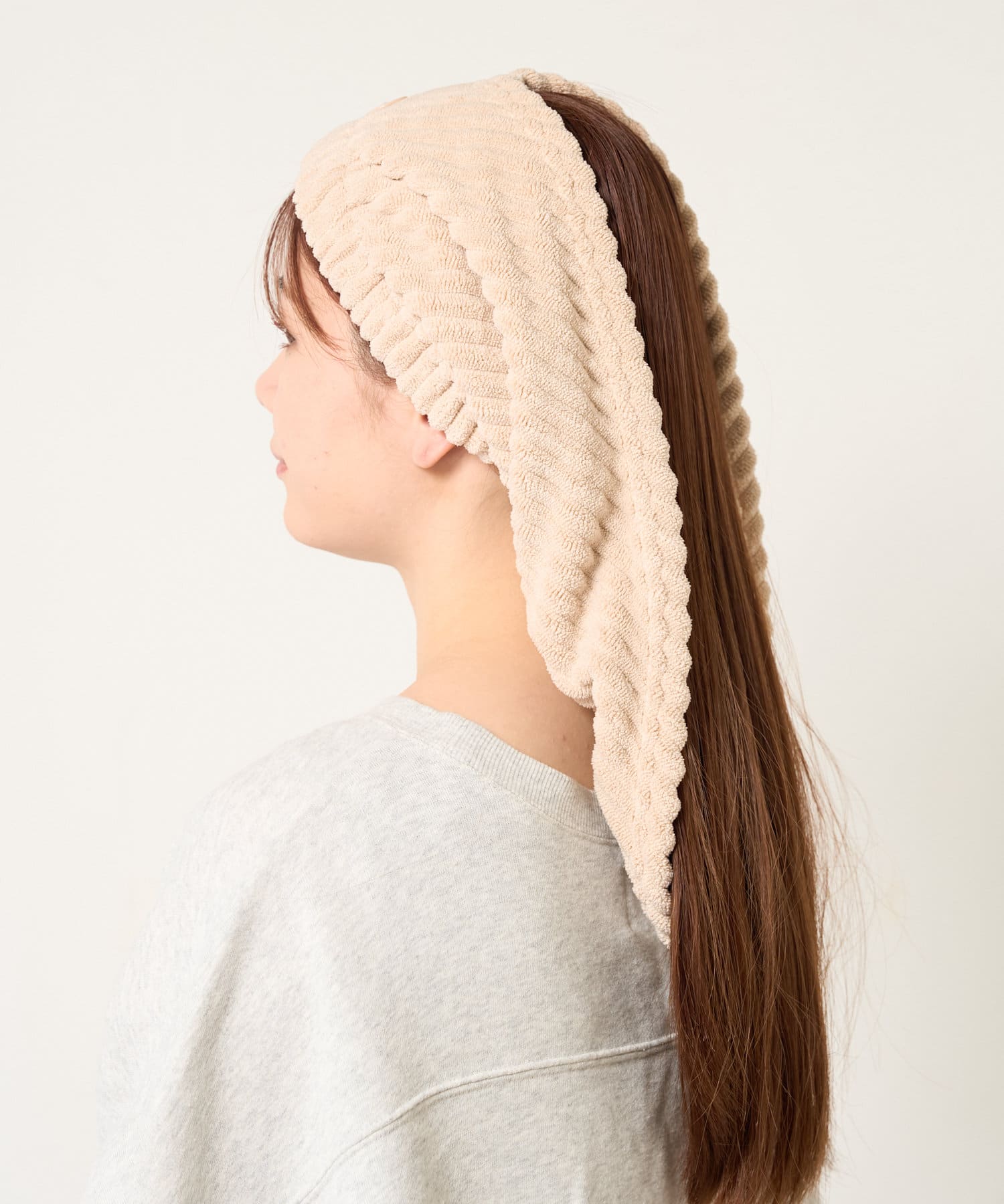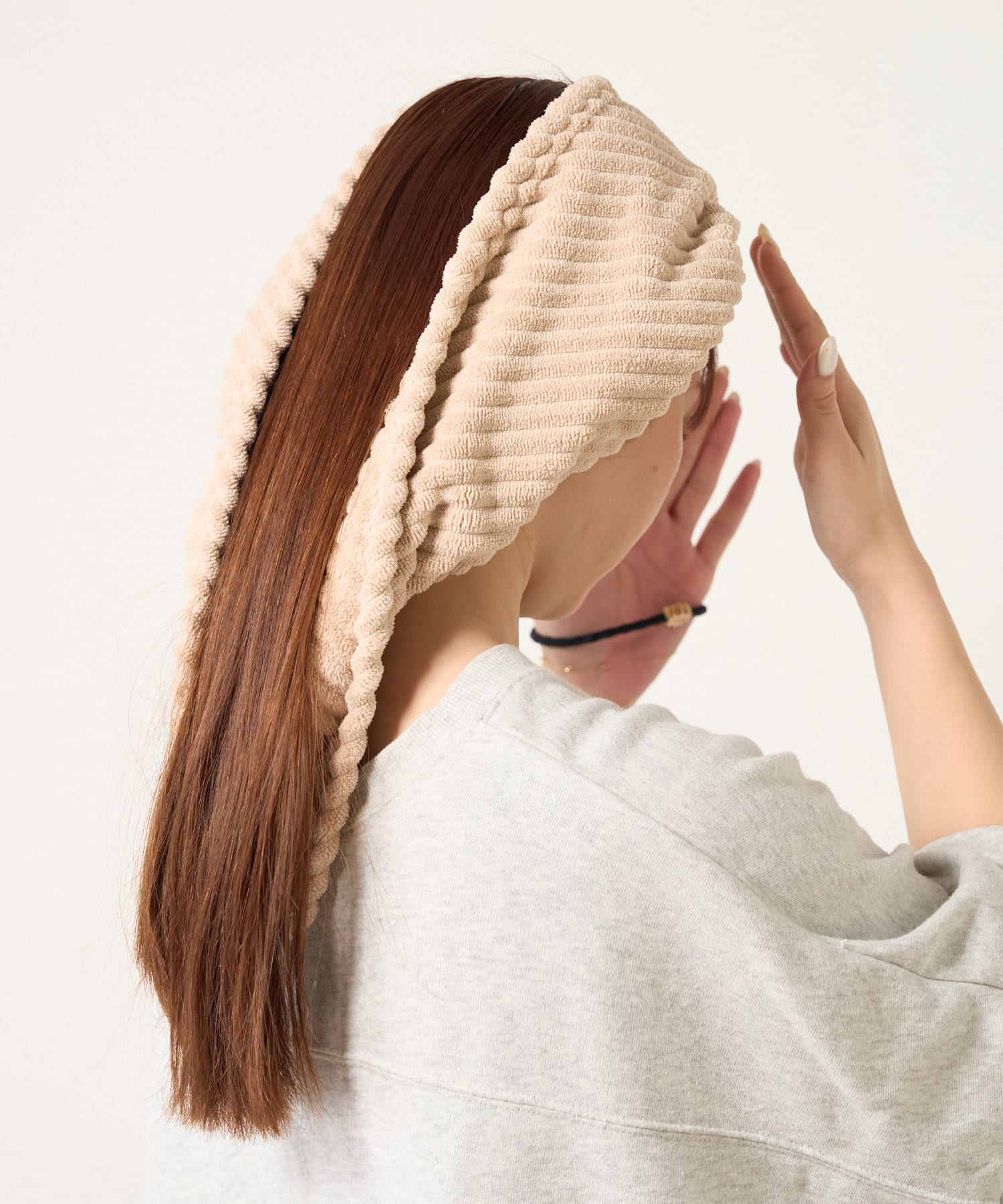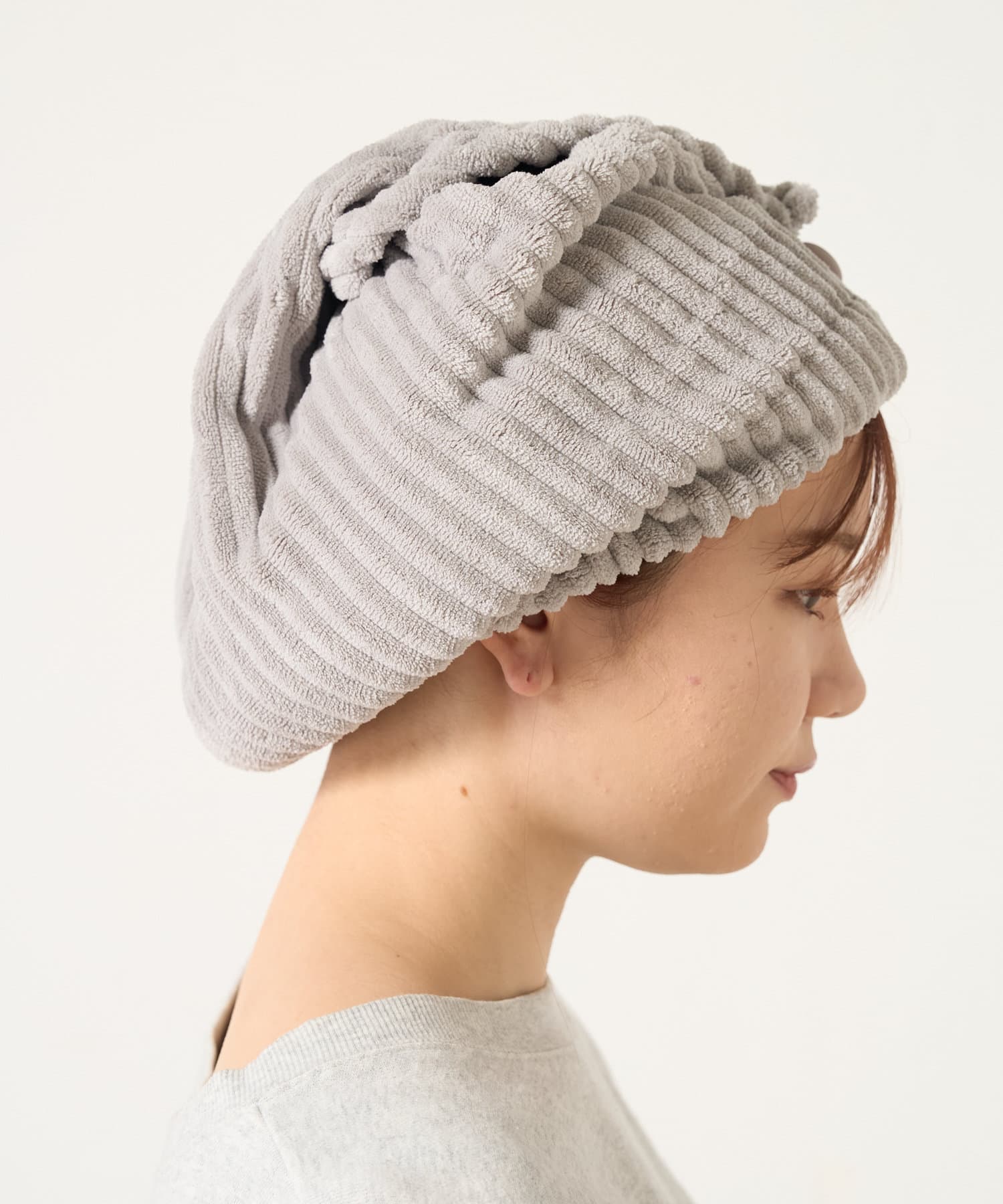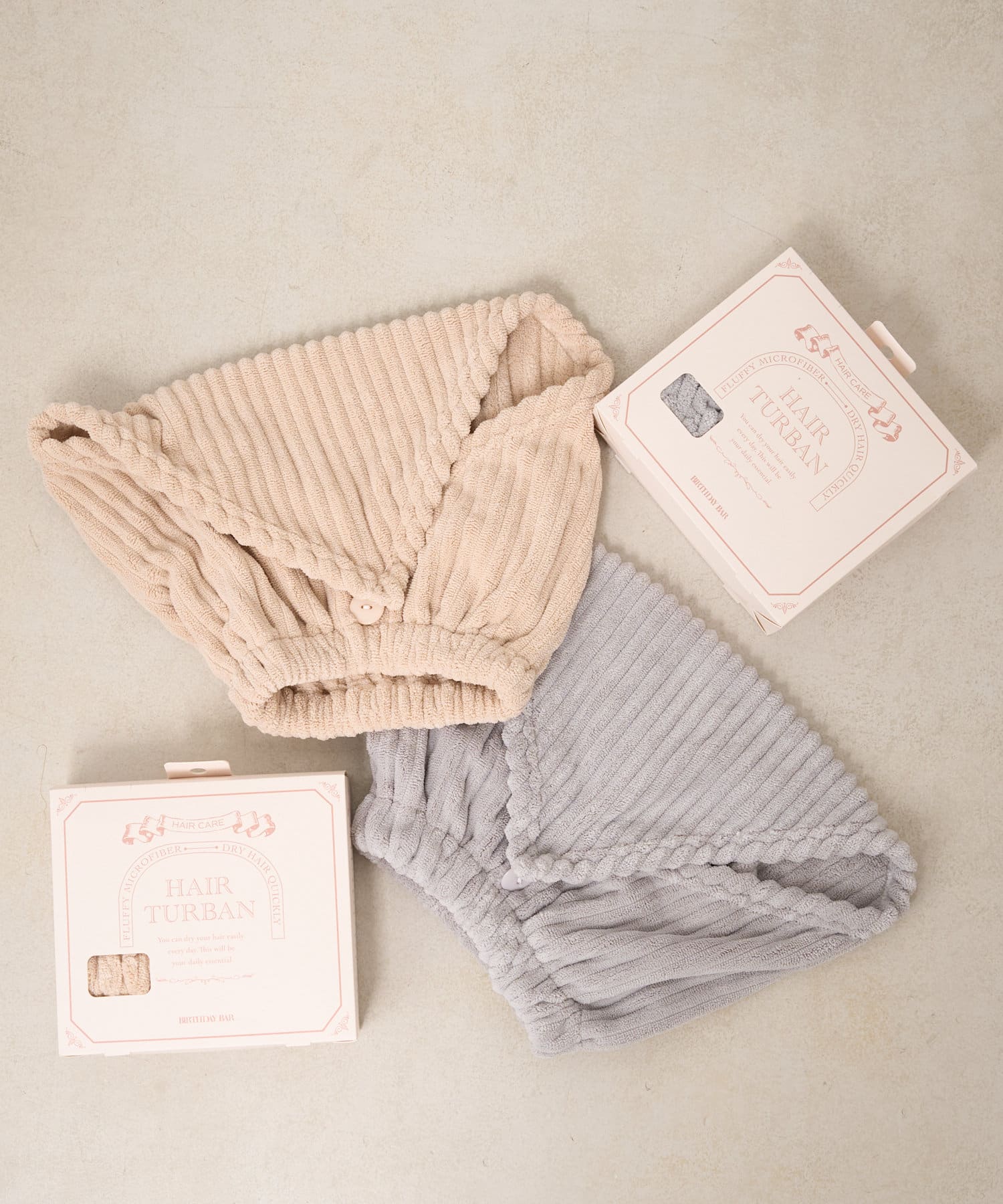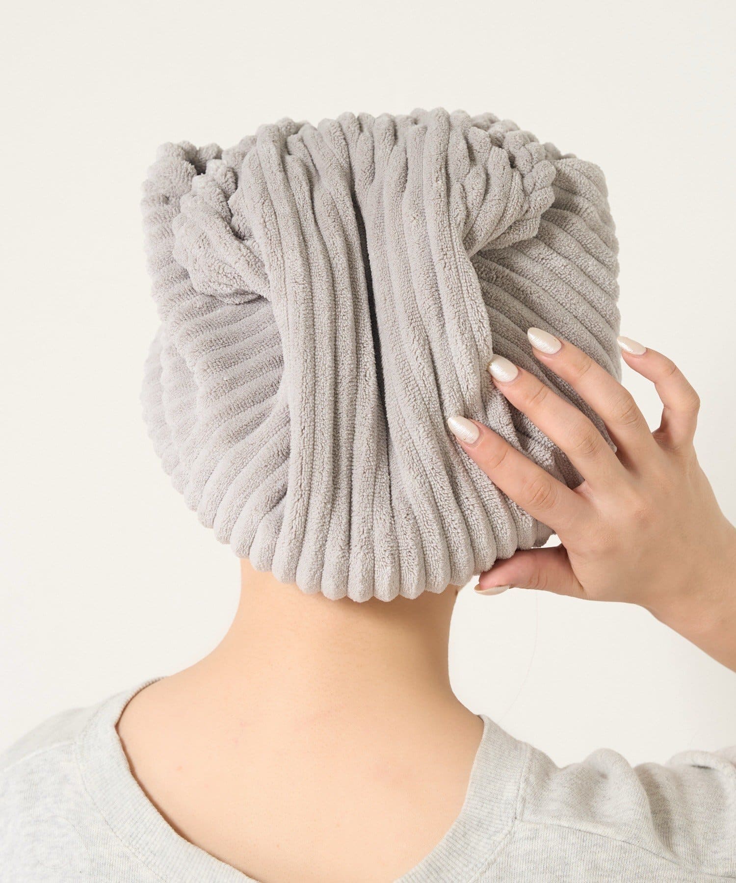 お風呂上がりやプール後の髪の毛の水分をサッと吸い取ってくれるヘアターバン。柔らかな素材でクセになるほどの心地よい肌触りも魅力です。ターバンタイプなので、頭全体をすっぽりと包み込んでくれ、簡単にヘアドライができます。自分用はもちろん、パッケージ入りなのでプレゼントにも最適です。