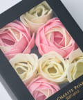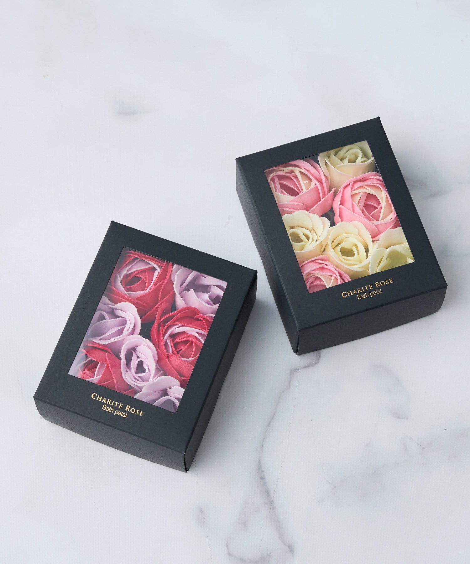 高級感あふれる黒い化粧箱に入った、本物そっくりのお花をかたどった入浴剤。