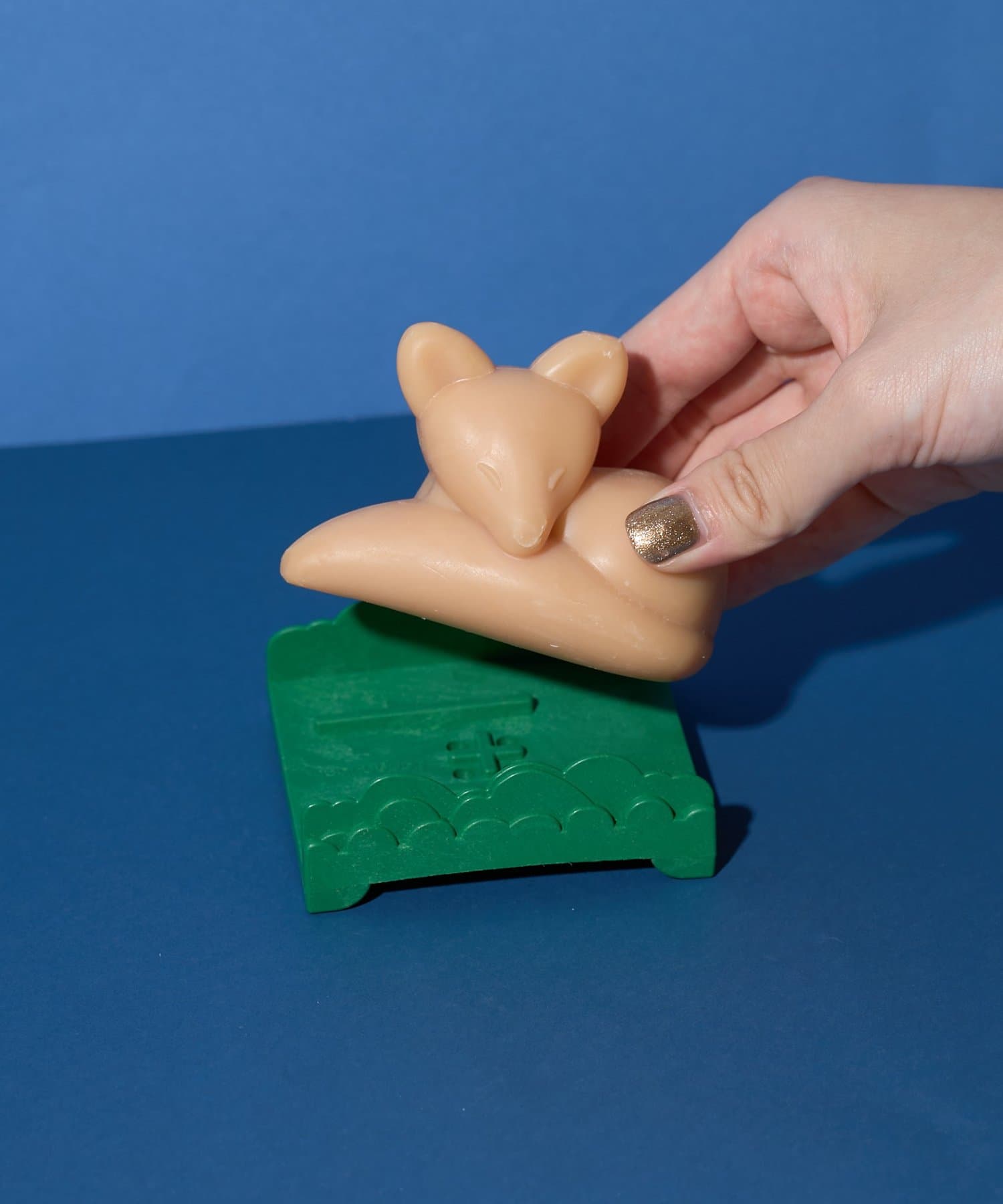 暖かい日差しの下、森の中で昼寝を楽しむキツネ。自然の静けさと神秘さを込めたシトラスハーバルウッディの香り。