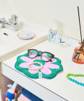SAHIRの代表的なモチーフであるフラワーと、ウェーブがかったチェック柄を組み合わせたデザイン。