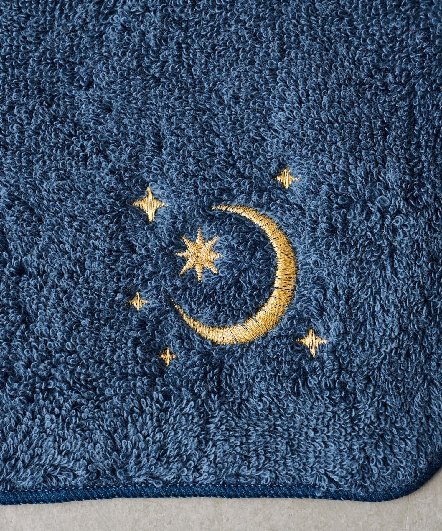 タオルハンカチはゴールドの月の刺繍がアクセント。オフィスでも、おでかけ先でも大活躍です。