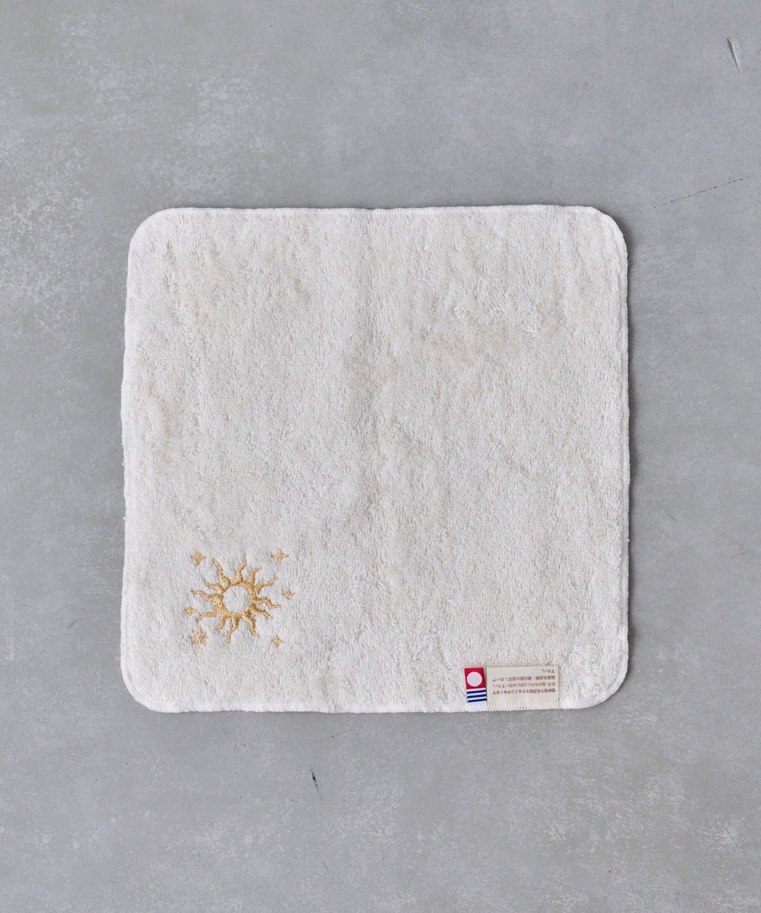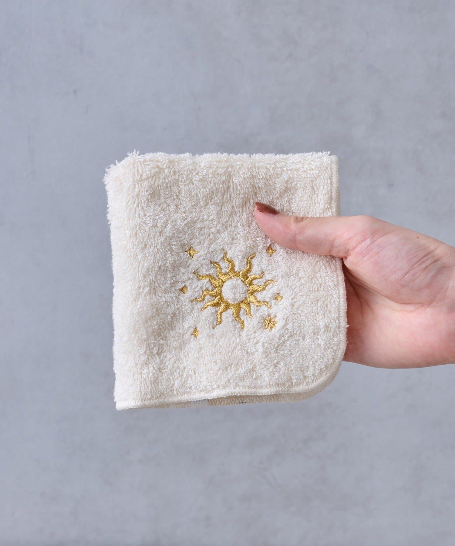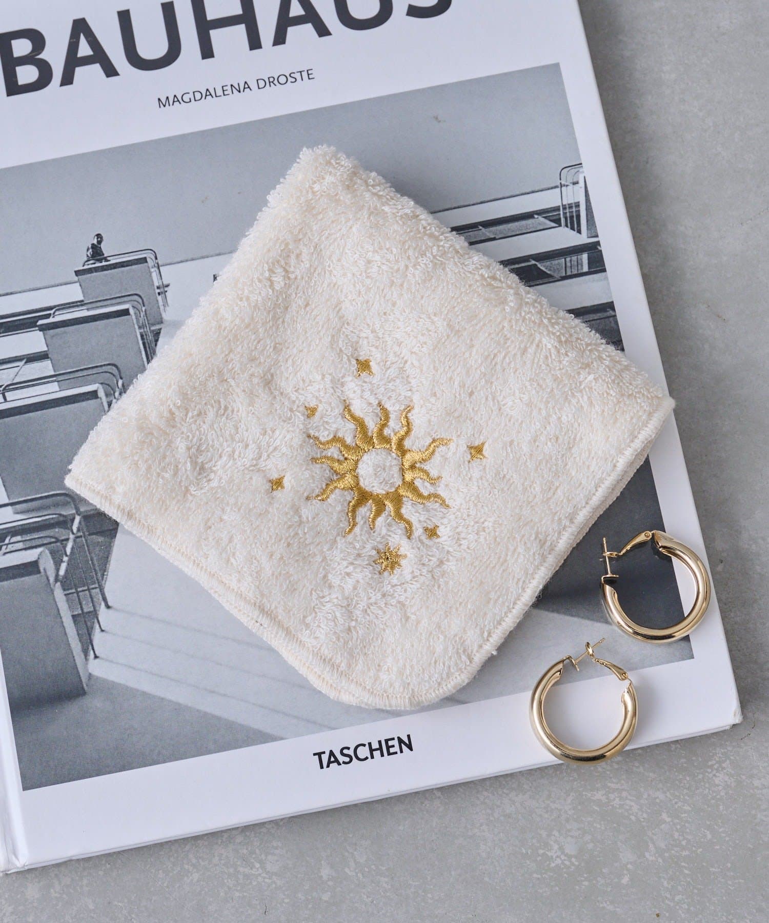 清潔感あふれるサボンの香りのオードトワレ(a.m. TRANSPARENT)には、太陽モチーフのタオルハンカチを合わせました。
