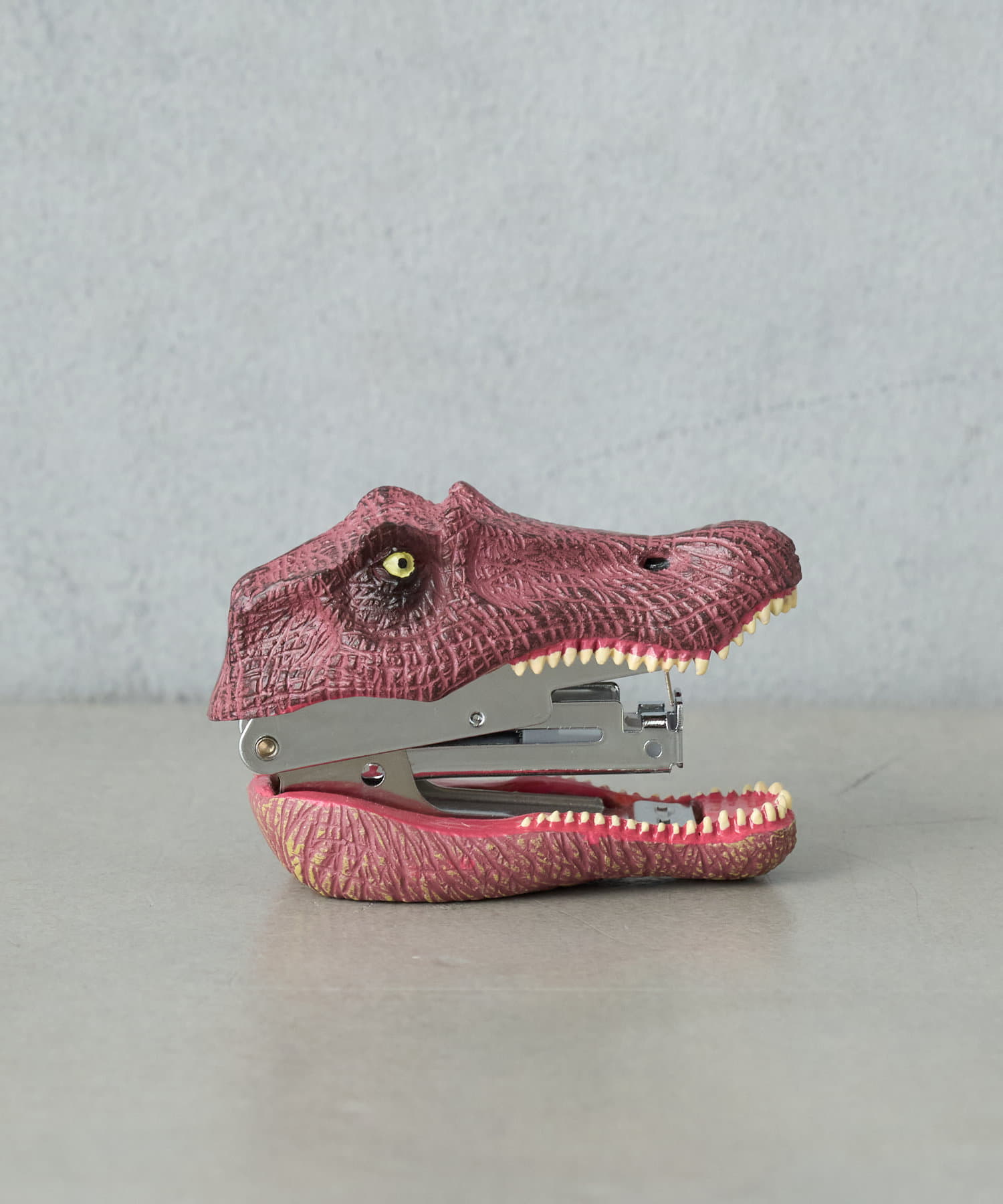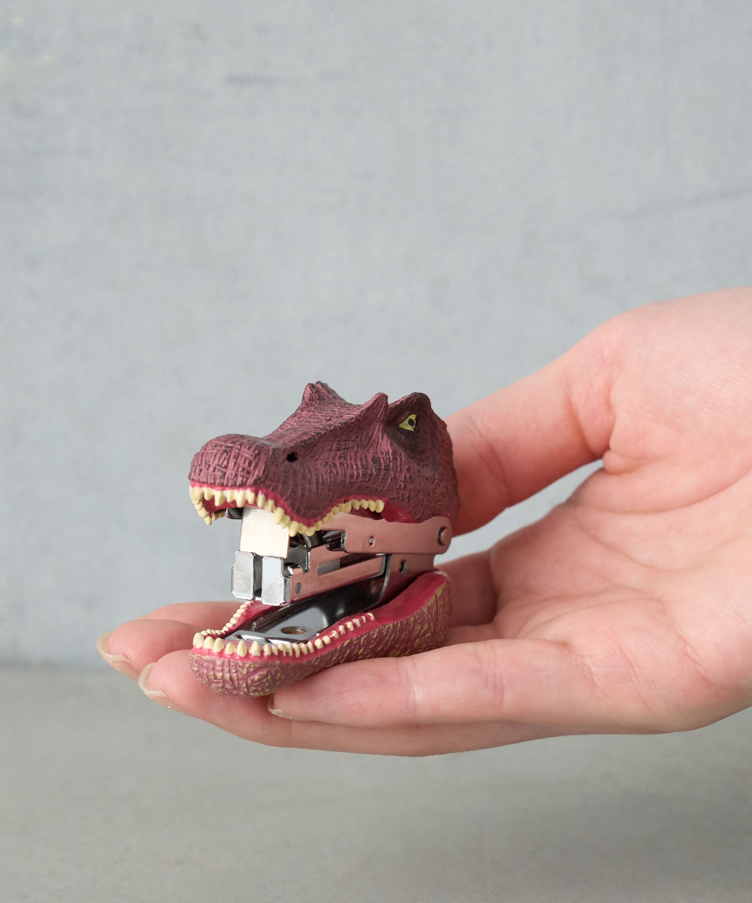 恐竜が紙を食べているかのように見えるユニークなステープラー。