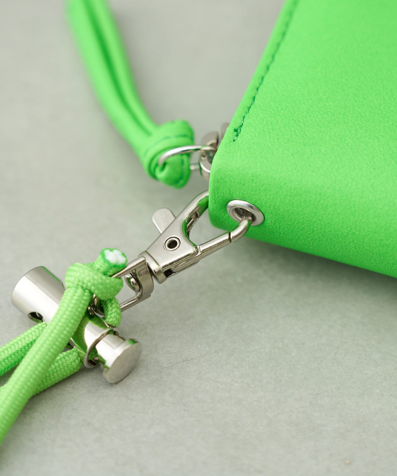 パッと目を引く蛍光カラーのシープレザー。ストラップ付きで手持ちや斜め掛けができ、コーデのアクセントになります。