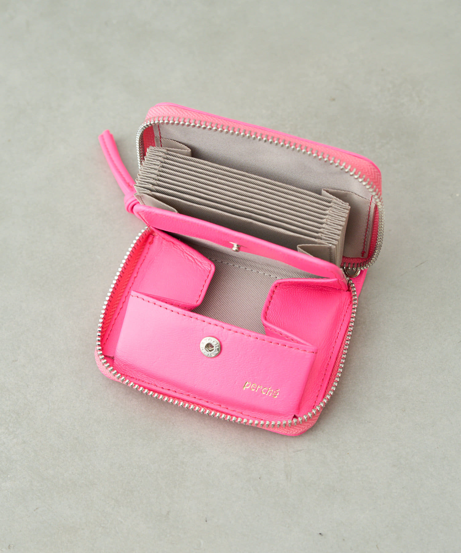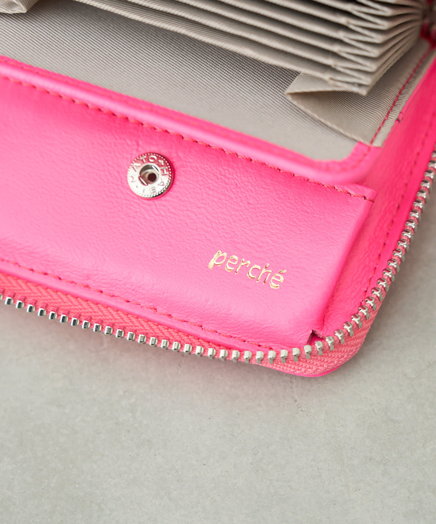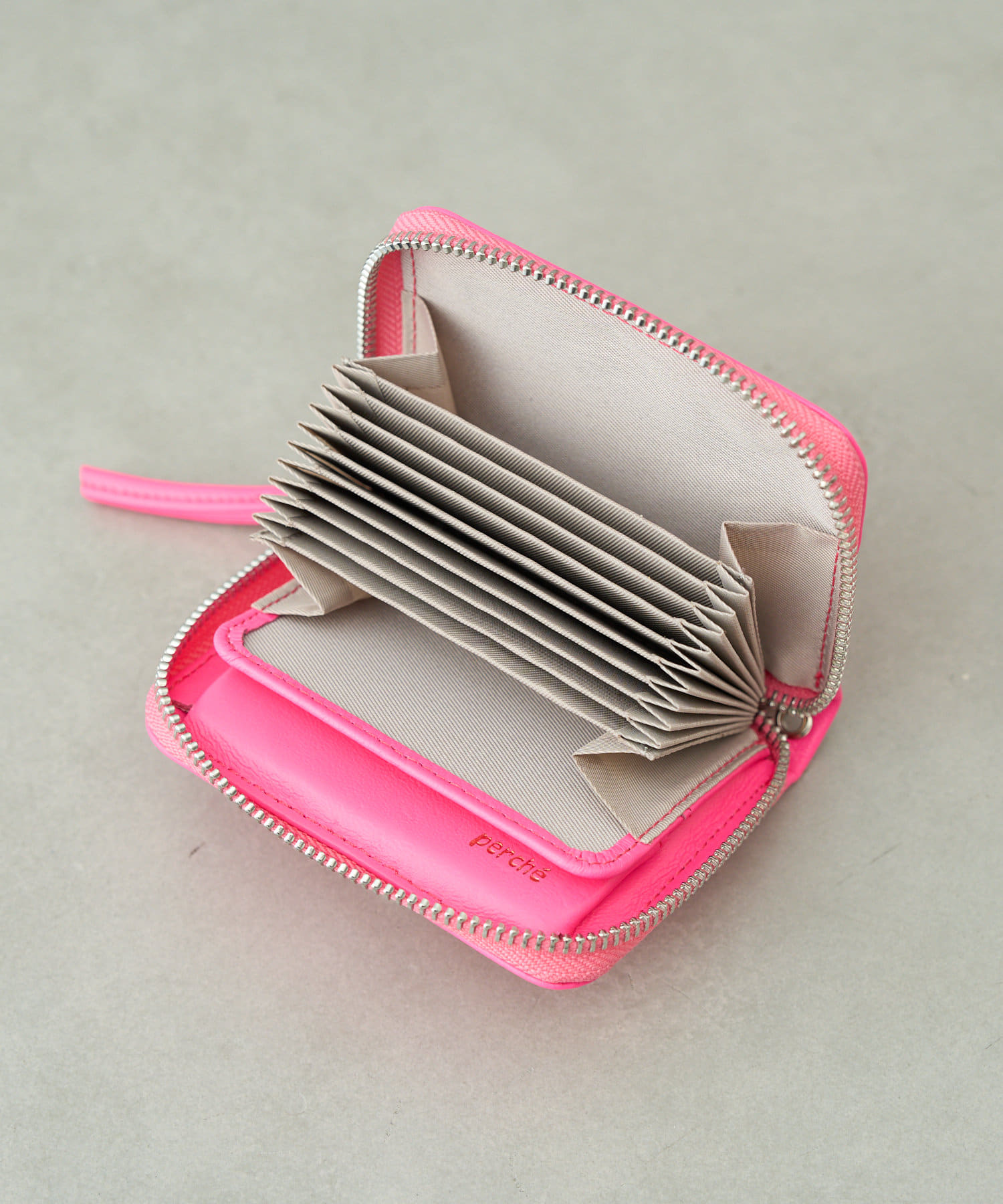 【perche ペルケ】蛍光レザーストラップ付ジャバラカードウォレット