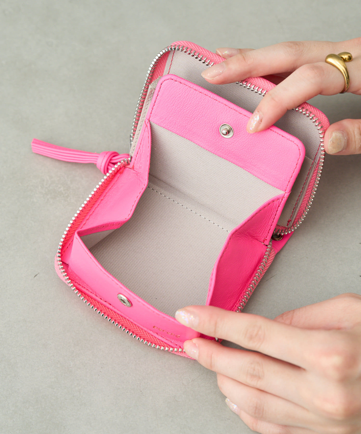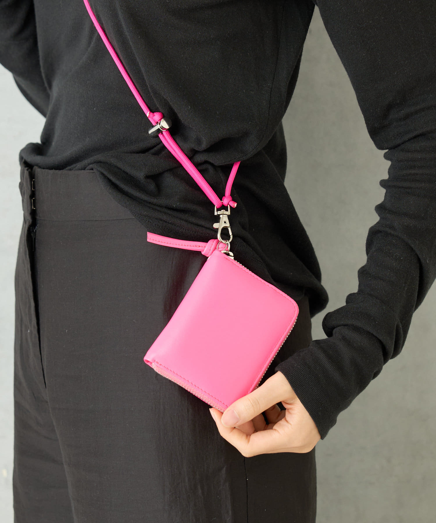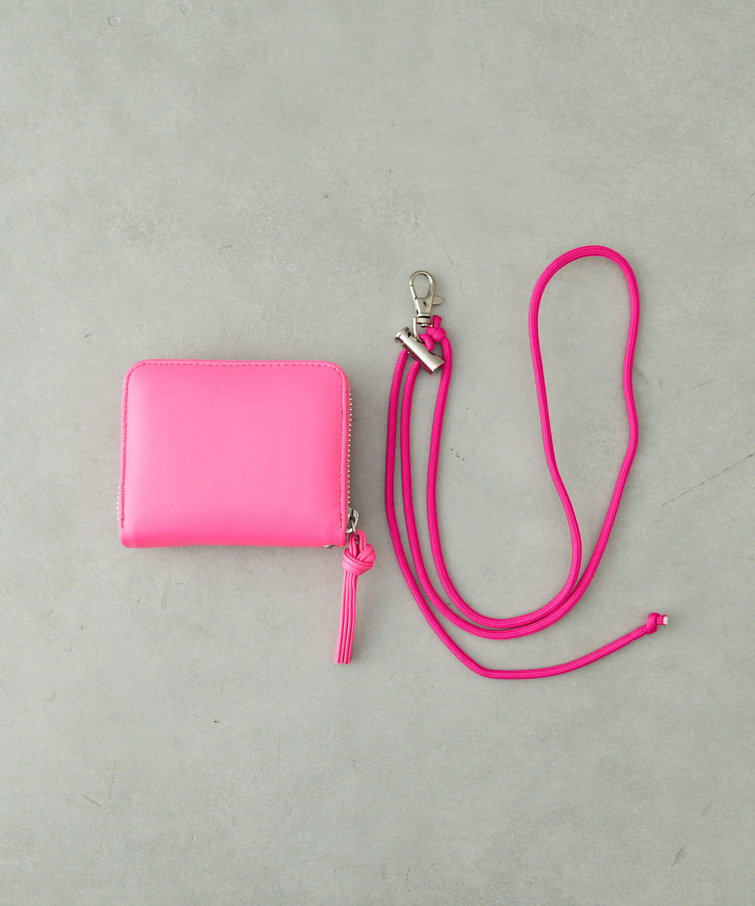 【perche ペルケ】蛍光レザーストラップ付ジャバラカードウォレット