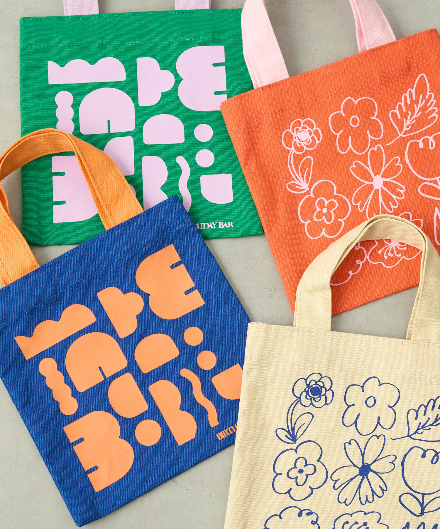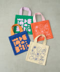 前面にプリントを施したオリジナルでつくったスクエア型トート。軽量で薄いので持ち運びしやすく、ランチやちょっとしたお出かけにぴったり。またハンカチやアニマルのキーホルダー、お菓子を詰め込んでバッグごとプレゼントするのもおすすめ。