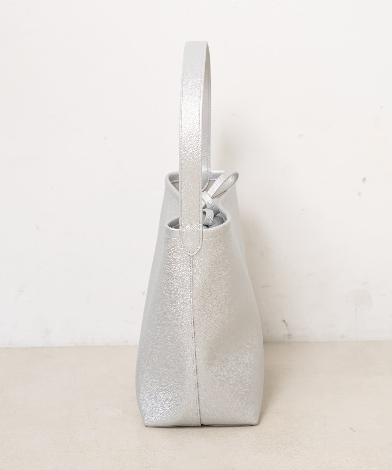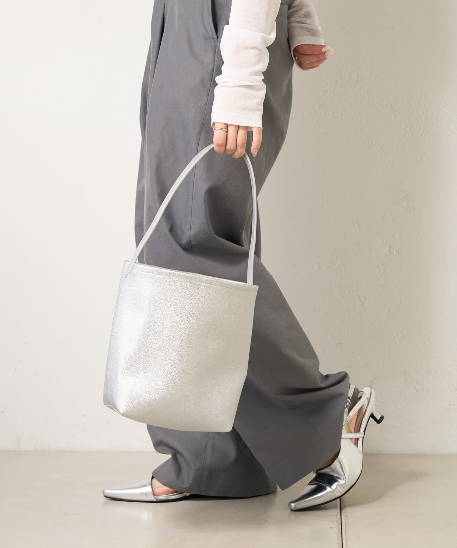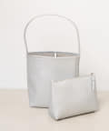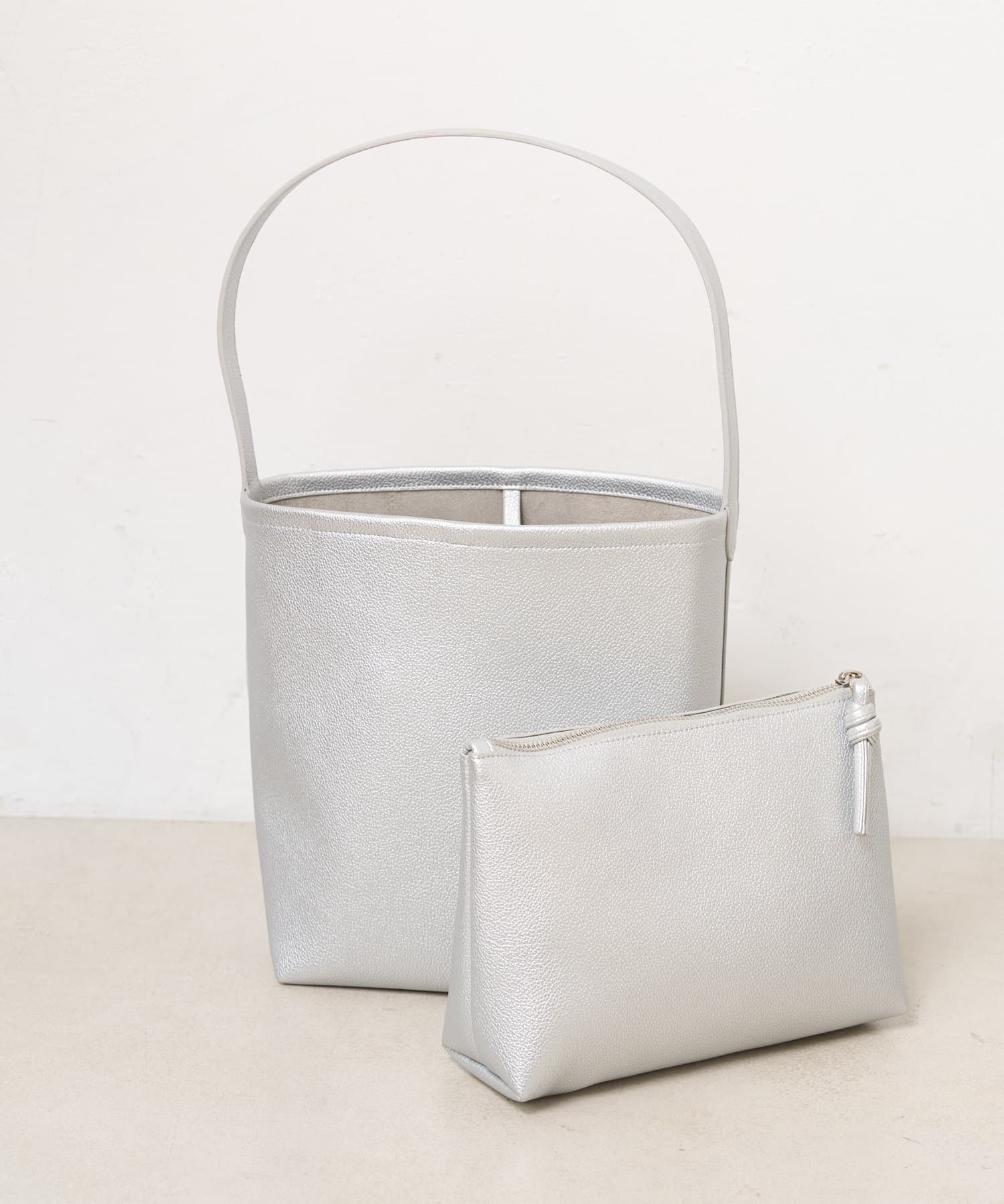 軽やかなシュリンク素材のフェイクレザーで作り上げたトートとポーチのセット。大好評のポーチつきのバッグは、今回も使い勝手バツグン。トートは肩掛けとハンドバッグとして持てる2WAY仕様で、毎日使う荷物がちょうど入る持ち運びしやすいサイズ感。ポーチはマチがあるので、コスメやガジェットアイテム、お菓子などあらゆるものを詰め込んでトートの中にイン!バッグの整理整頓にも役立ちます。今回はカラーにもこだわり、春らしいブルー、イエロー、シルバーの3色展開。同時に発売となるハンカチやポーチなど同じカラーリングで揃えるのもおすすめ。