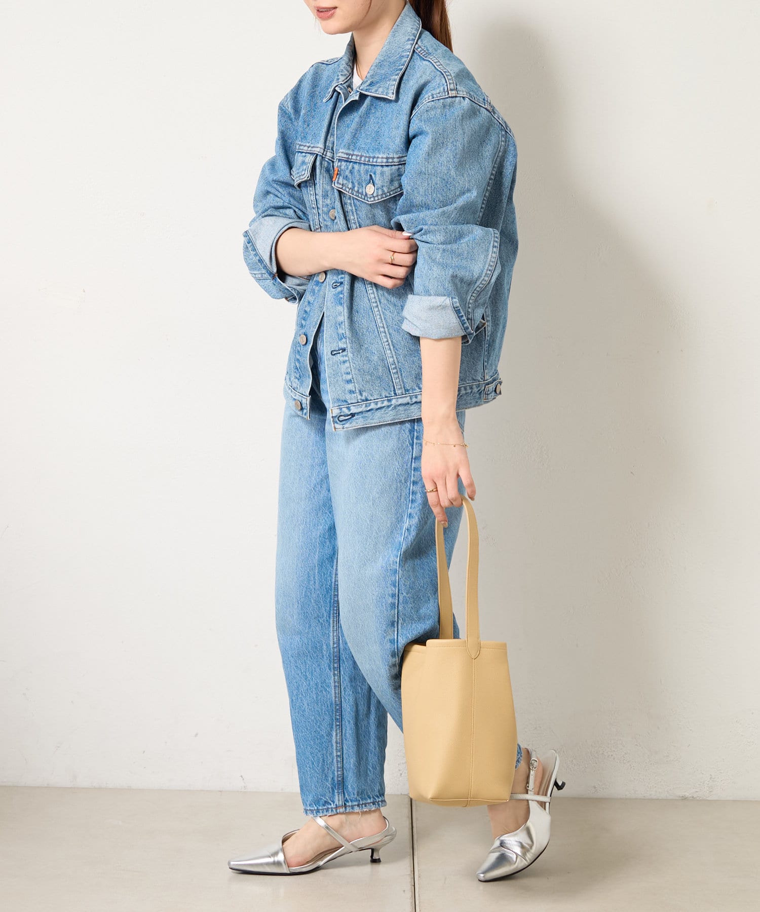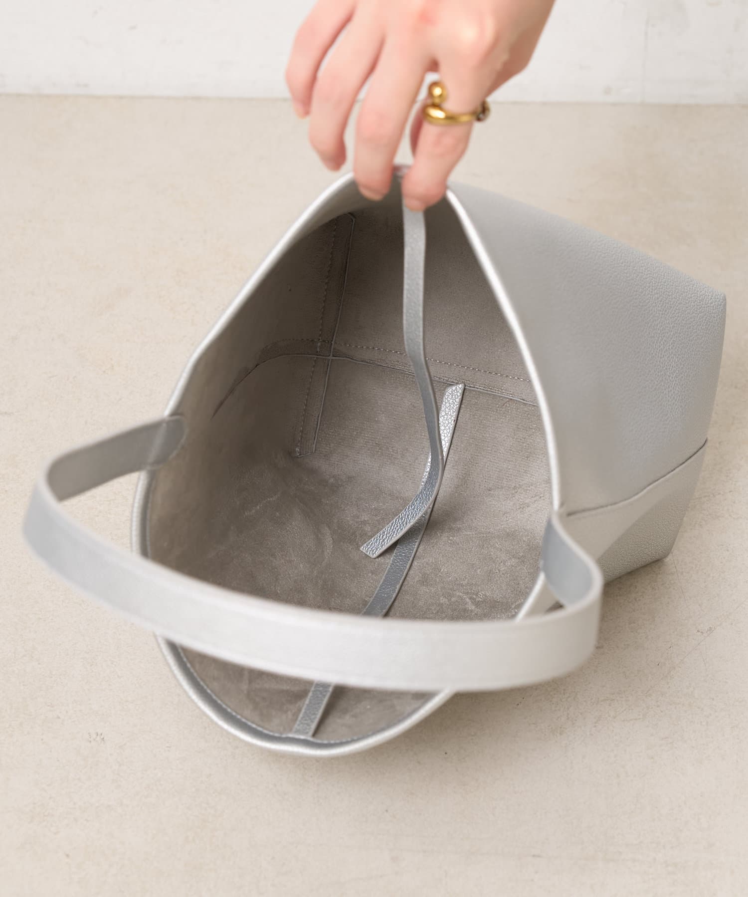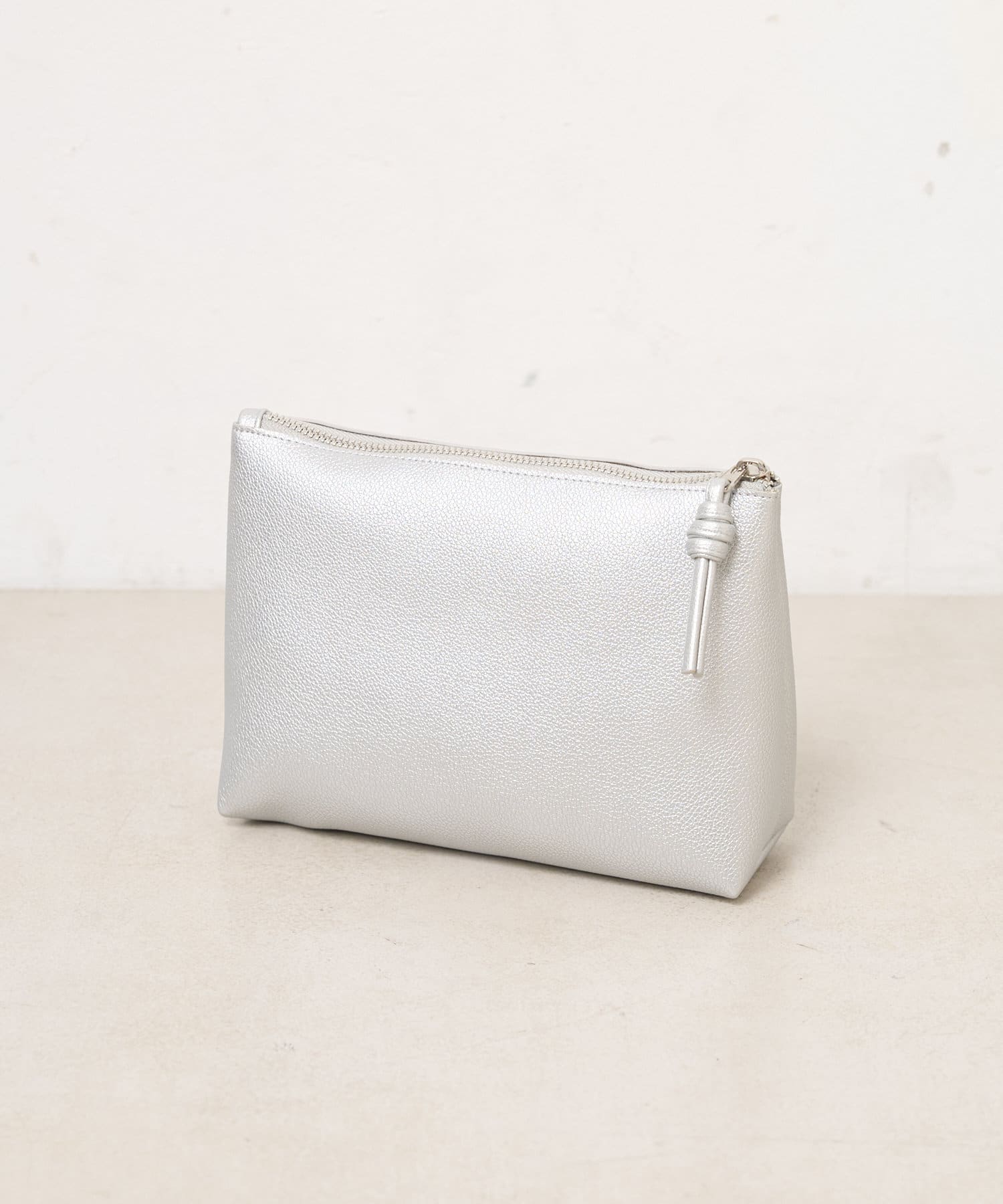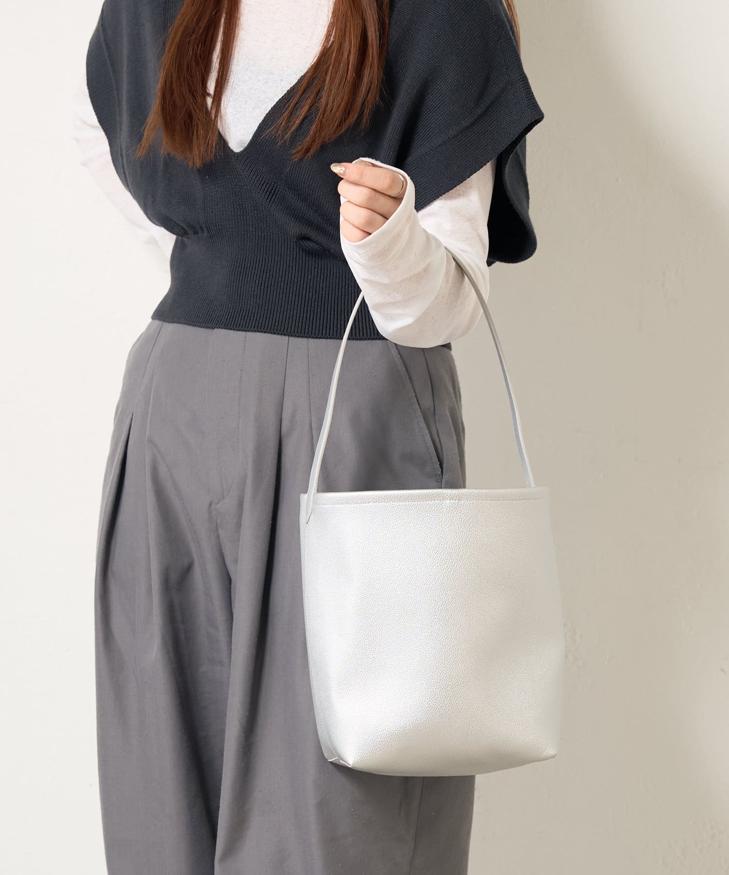 軽やかなシュリンク素材のフェイクレザーで作り上げたトートとポーチのセット。大好評のポーチつきのバッグは、今回も使い勝手バツグン。トートは肩掛けとハンドバッグとして持てる2WAY仕様で、毎日使う荷物がちょうど入る持ち運びしやすいサイズ感。ポーチはマチがあるので、コスメやガジェットアイテム、お菓子などあらゆるものを詰め込んでトートの中にイン!バッグの整理整頓にも役立ちます。今回はカラーにもこだわり、春らしいブルー、イエロー、シルバーの3色展開。同時に発売となるハンカチやポーチなど同じカラーリングで揃えるのもおすすめ。