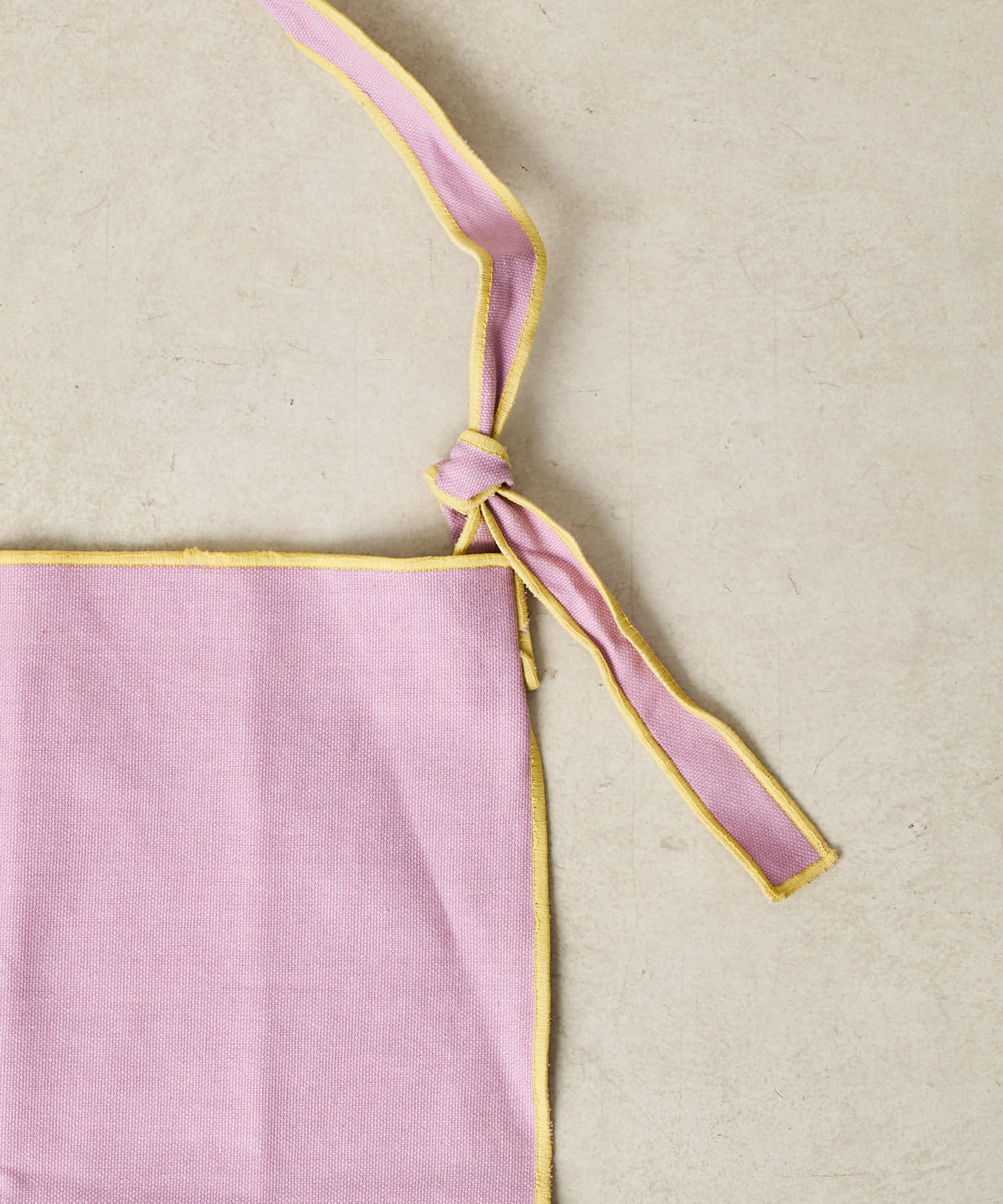 フラットタイプで、A4サイズがジャストで入るサイズ感です。持ち手の結び方によって長さ調整も可能。