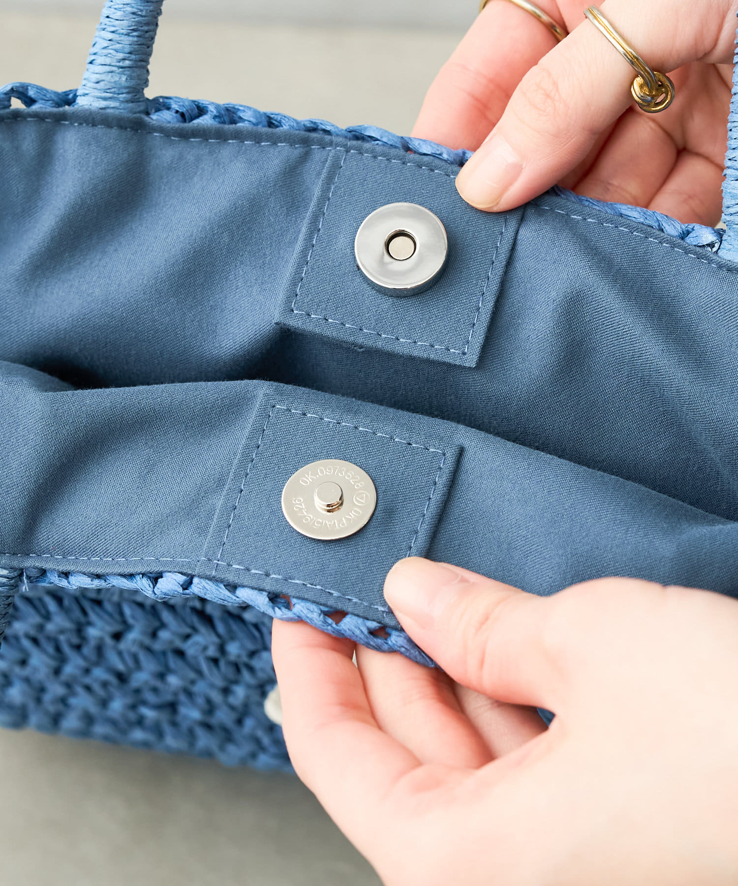 季節感のあるペーパー素材のかわいいトートバッグ。一点一点手編みで丁寧に作られています。