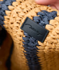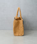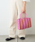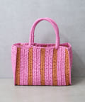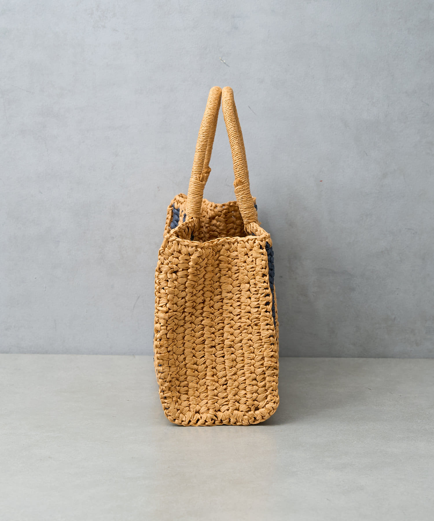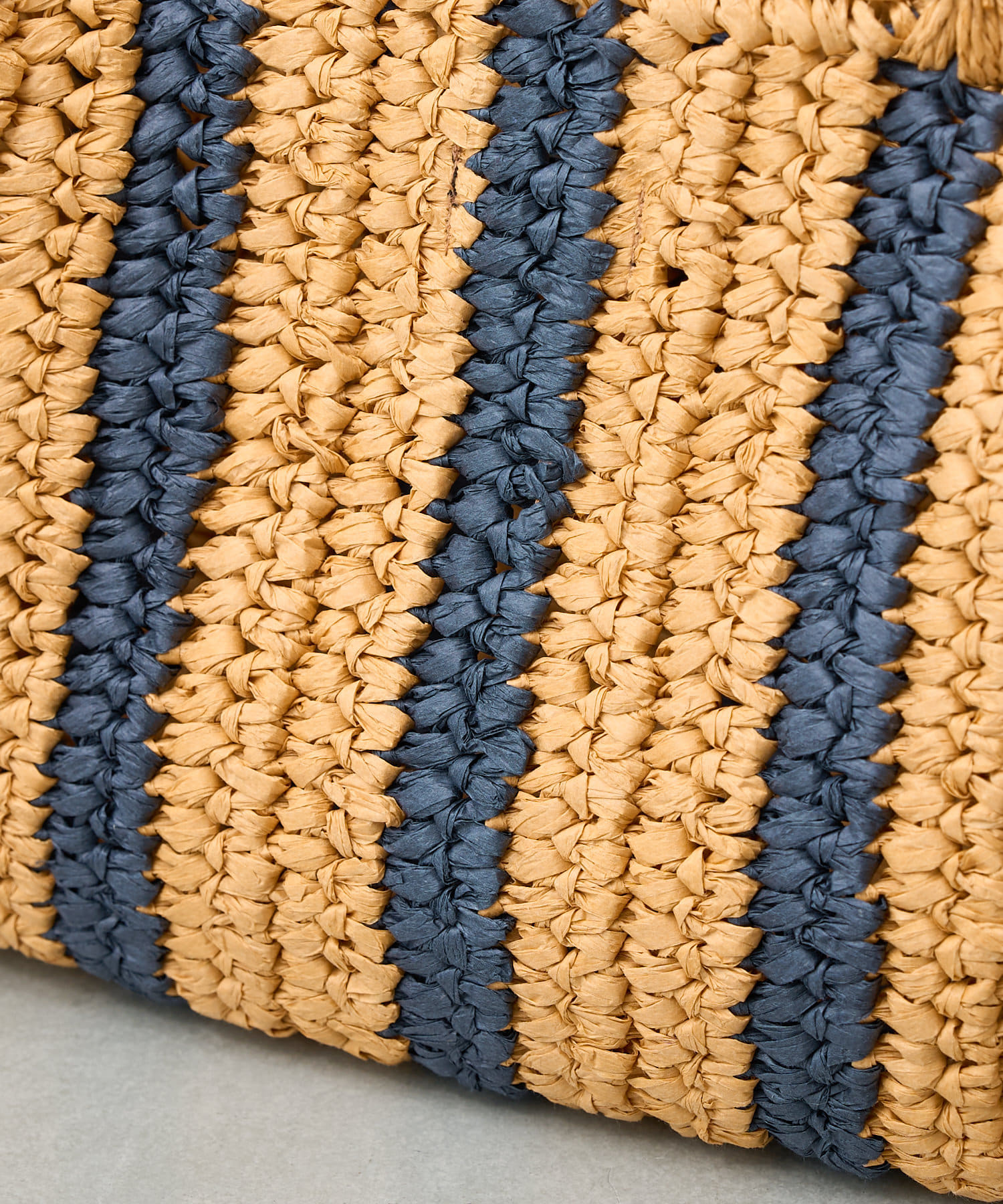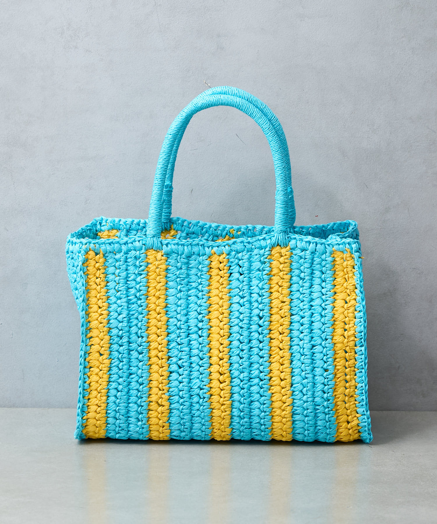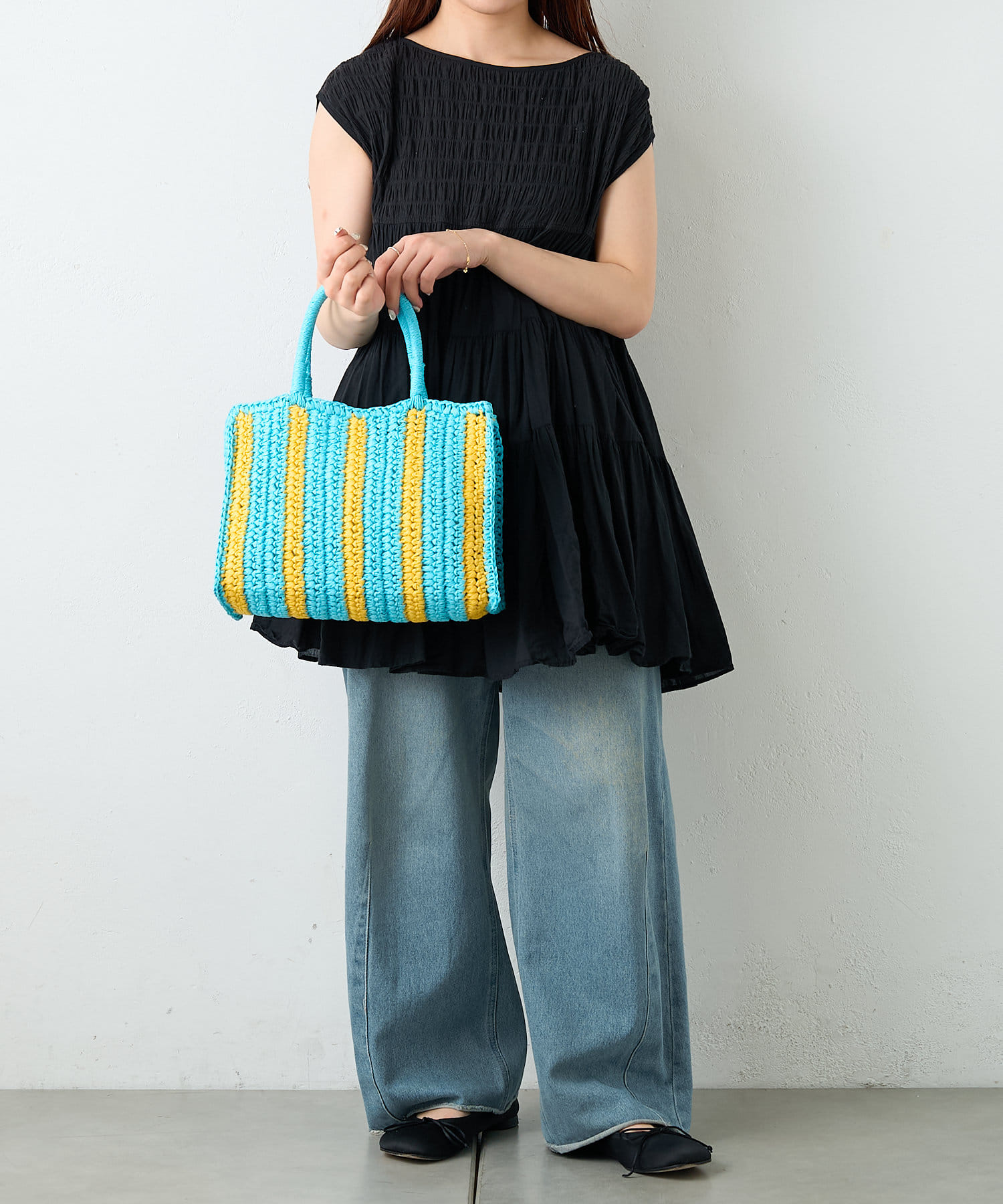 ナチュラルなペーパー素材に、ストライプが映えたトートバッグ。一点一点手編みで丁寧に作られています。