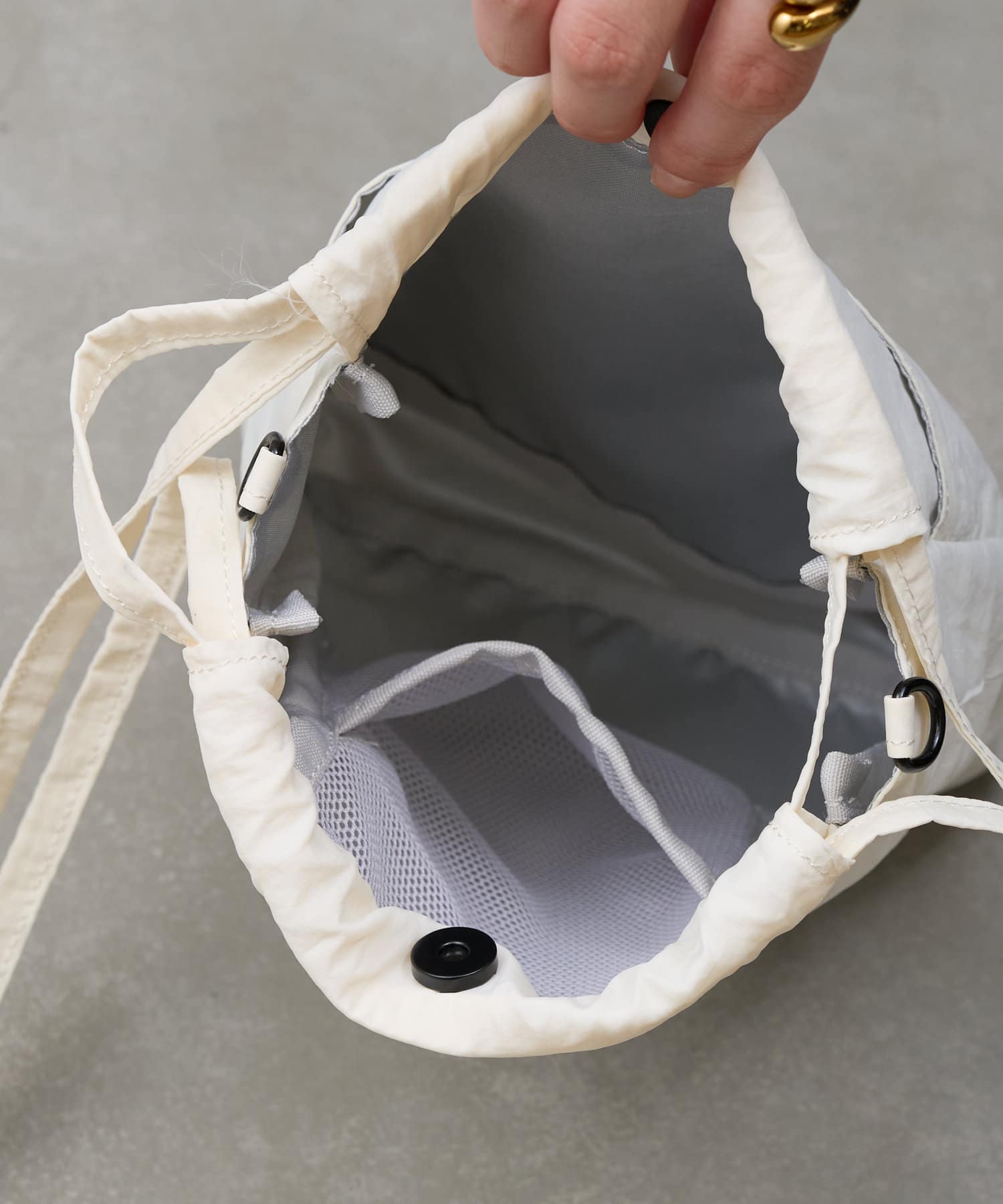 上は巾着仕様で、中身が見えずにお使いいただけます。