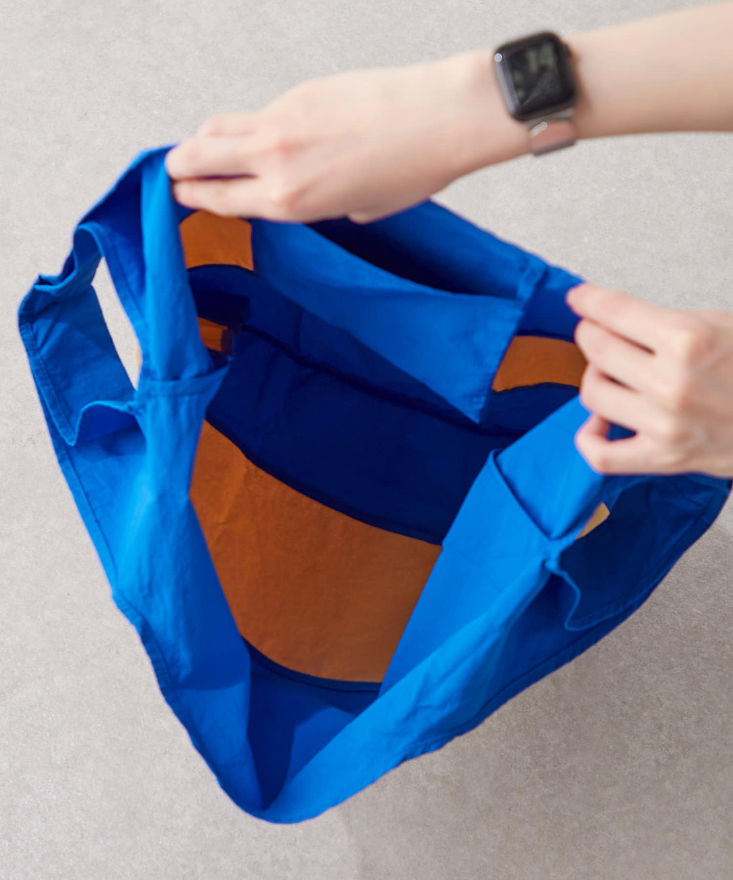 撥水加工を施したナイロン素材のマルシェバッグ。