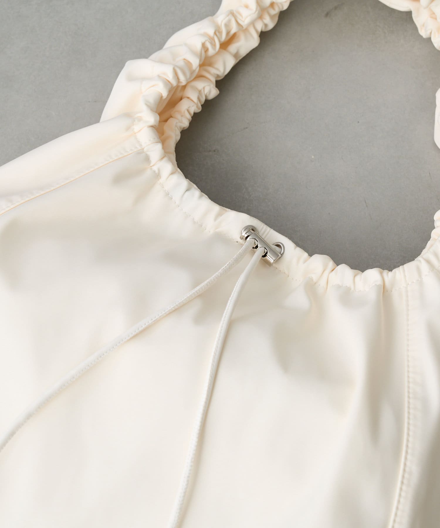 ショルダー部分がギャザーになっているところがデザインのポイント◎