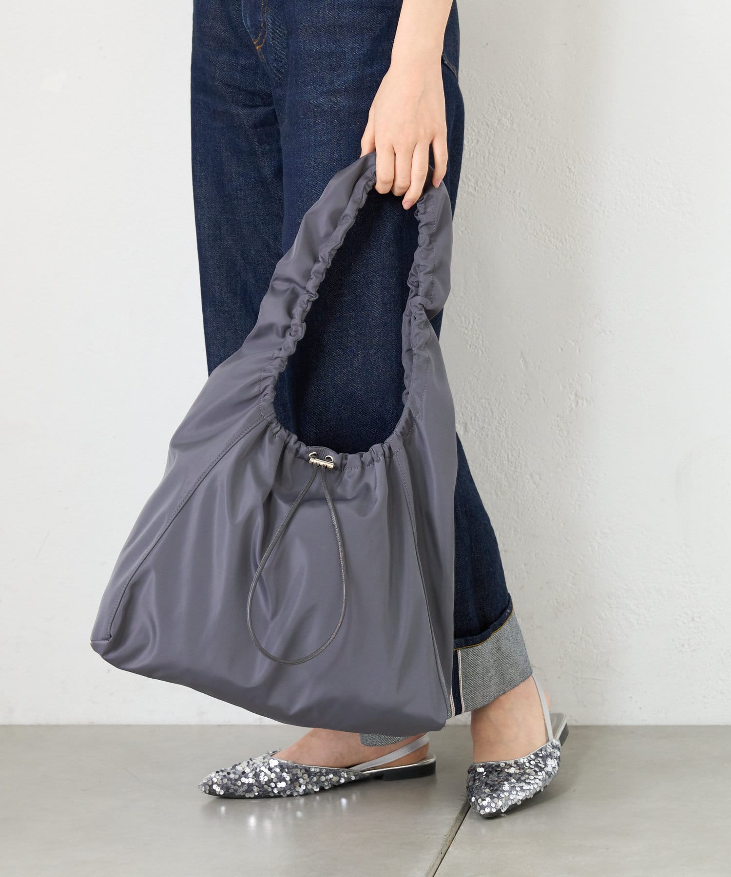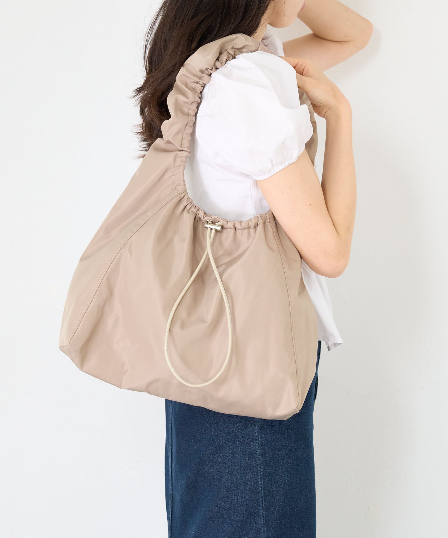 撥水ナイロンギャザーハンドルバッグ