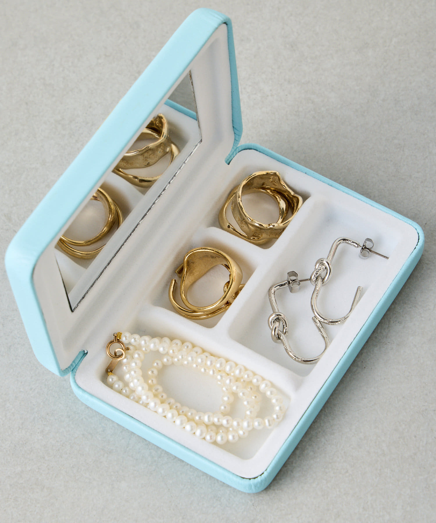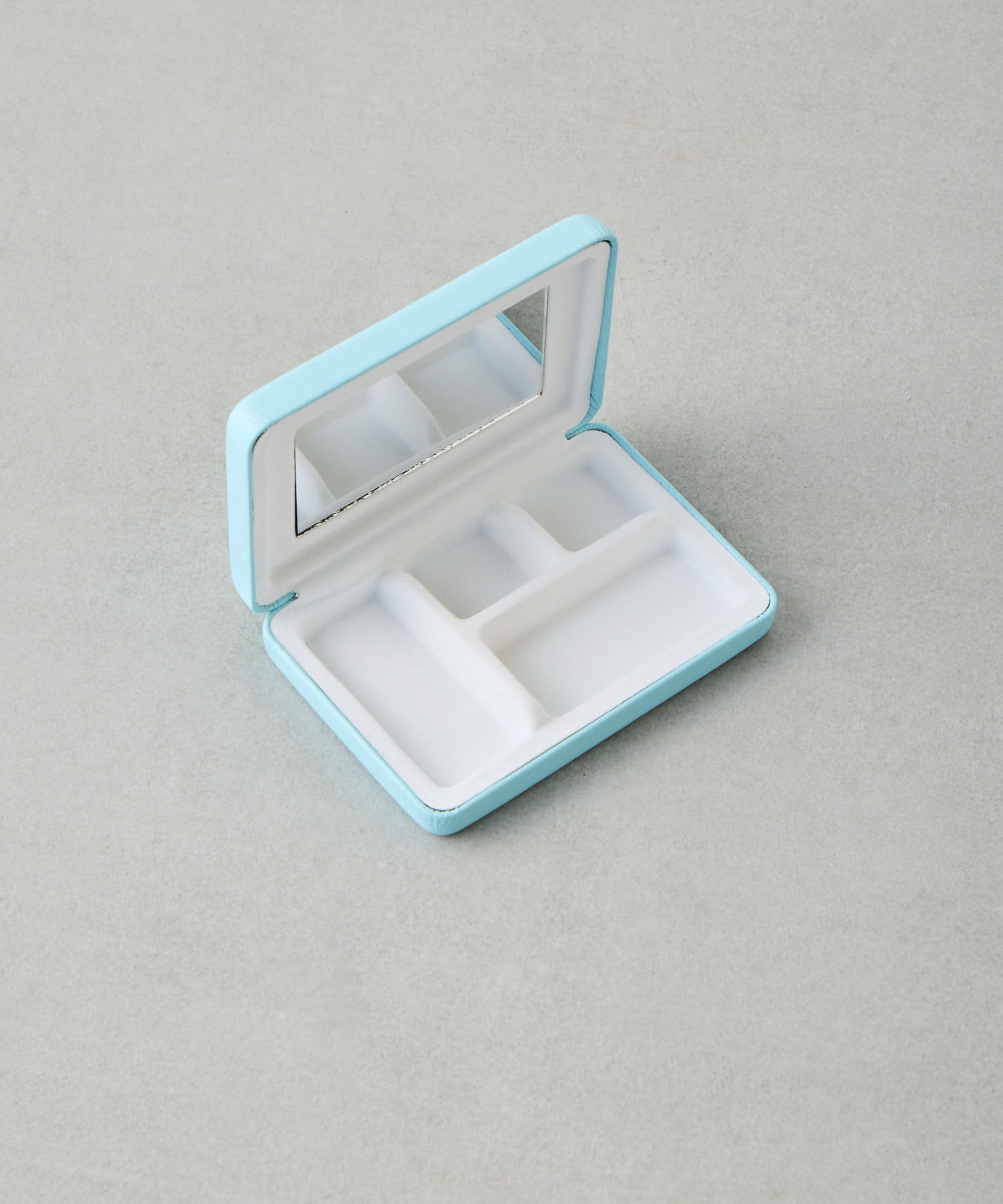 しっかりとしたつくりで、大切なアクセサリーやお薬等細かなものを収納するのにぴったり。ミラーつきなので、メイク直しやアクセサリーをつける際にも便利。