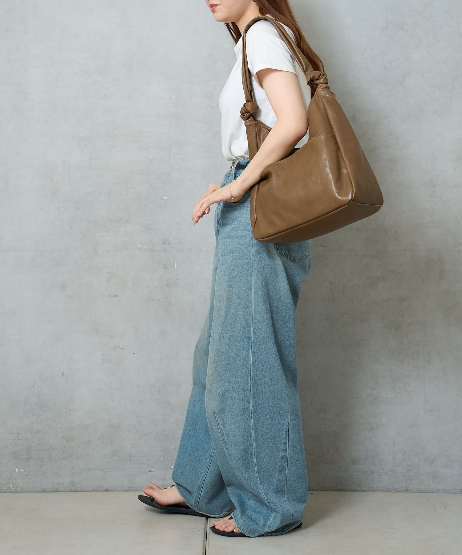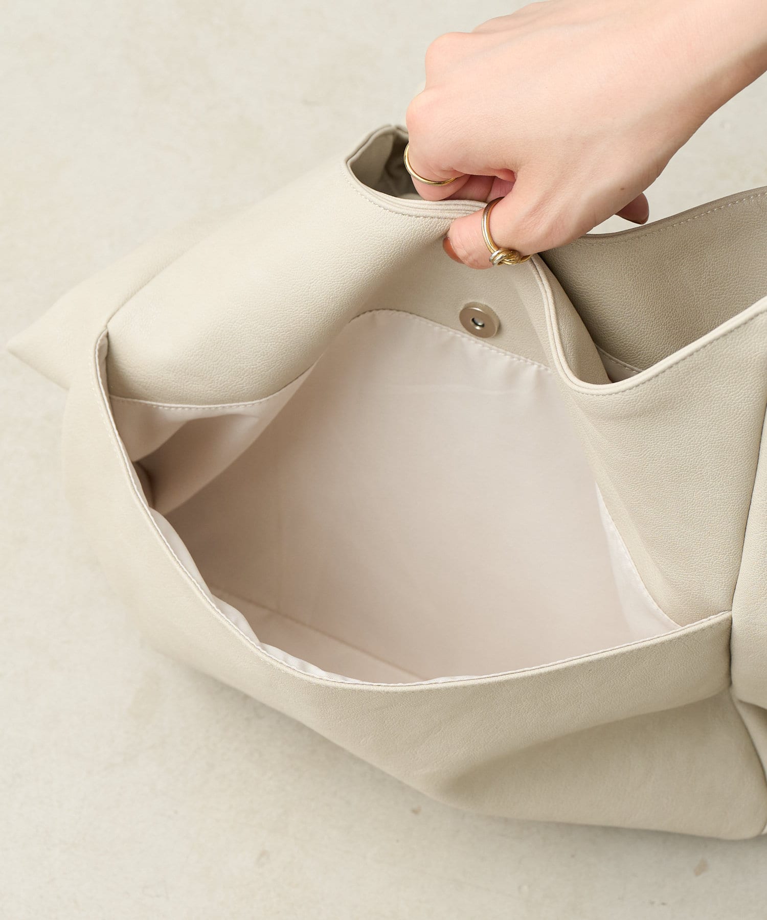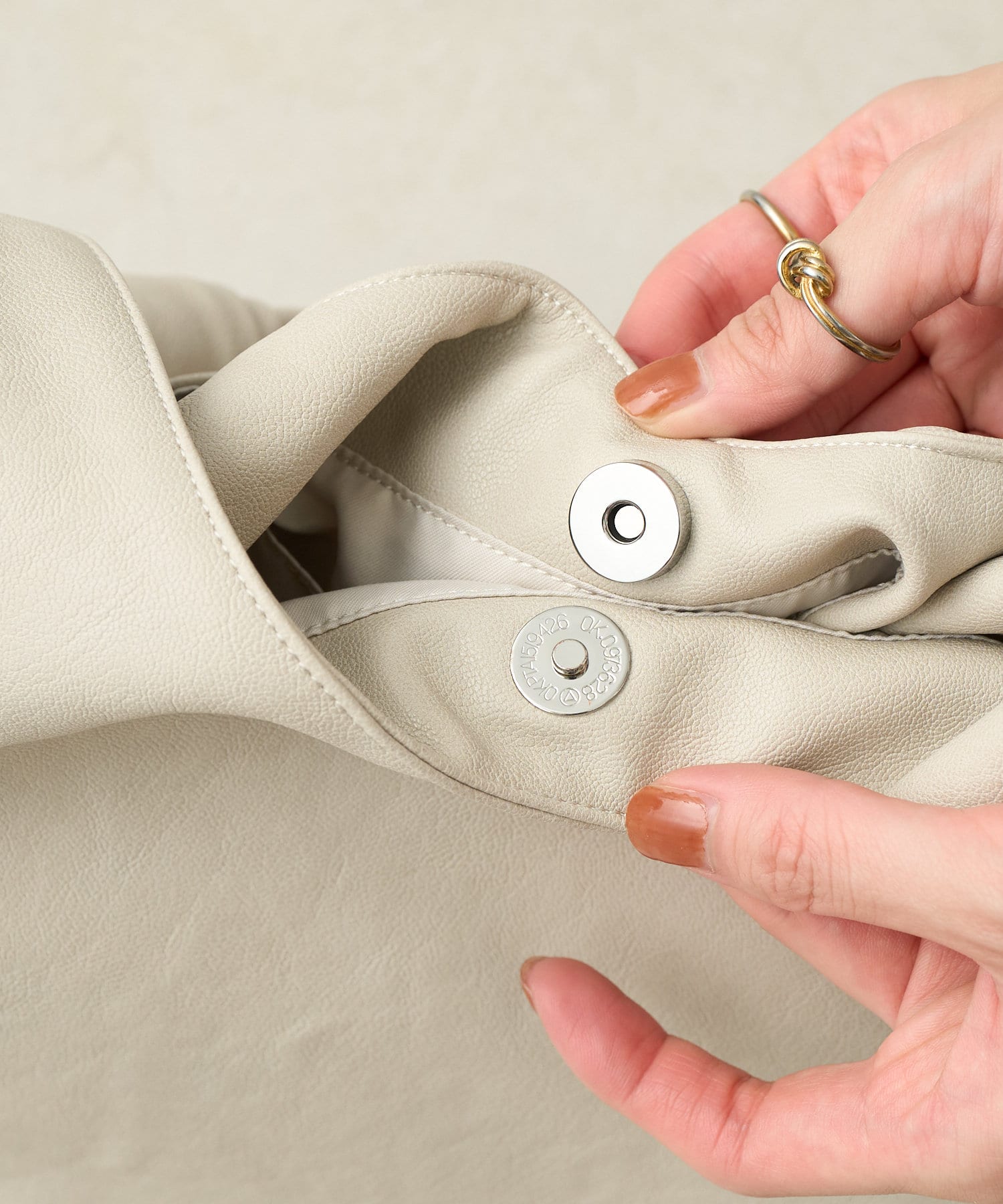 高見えするスムースのフェイクレザーを使用したワンショルダーバッグ。