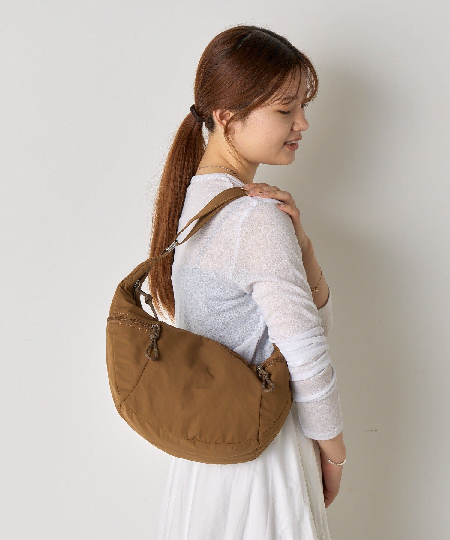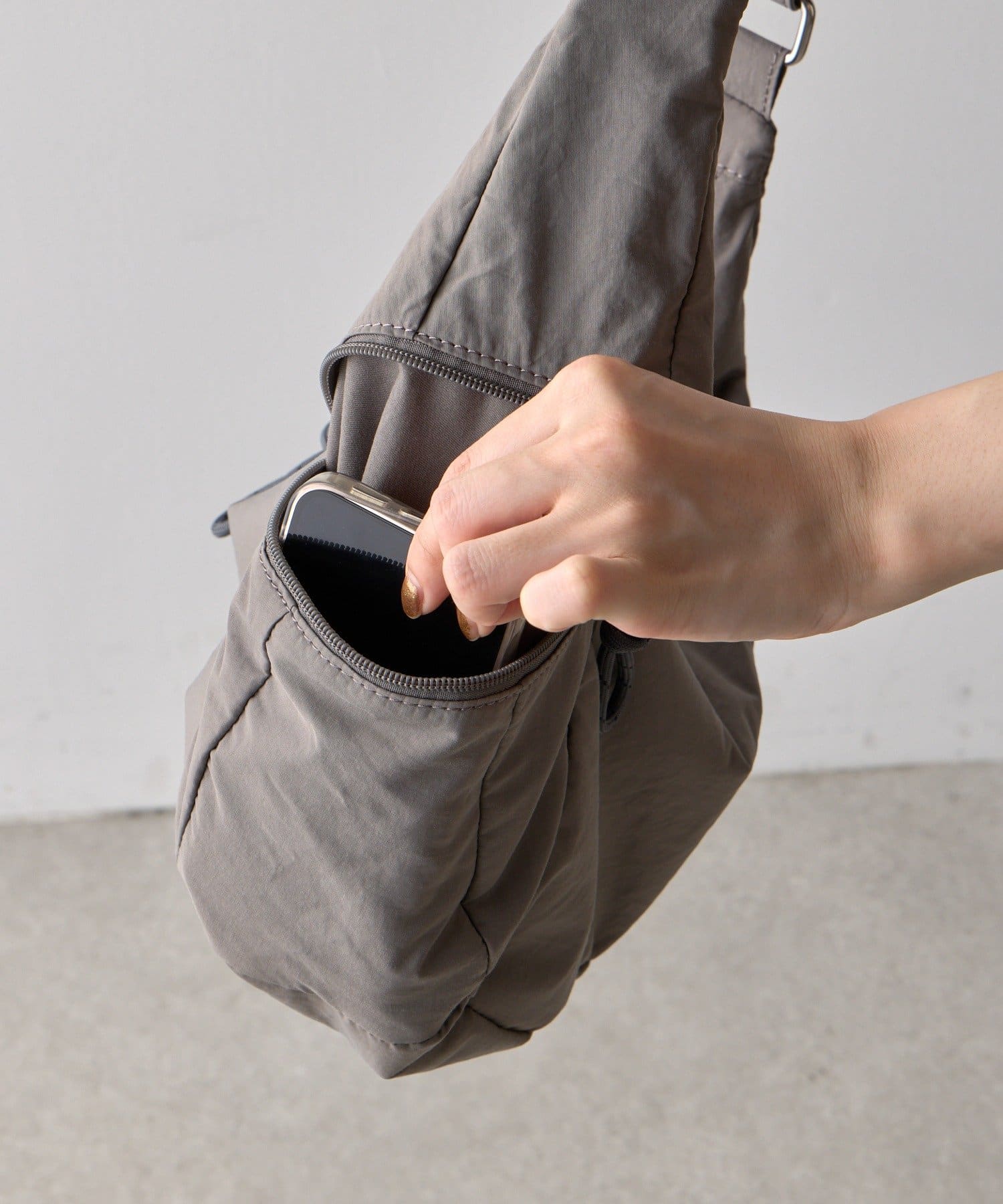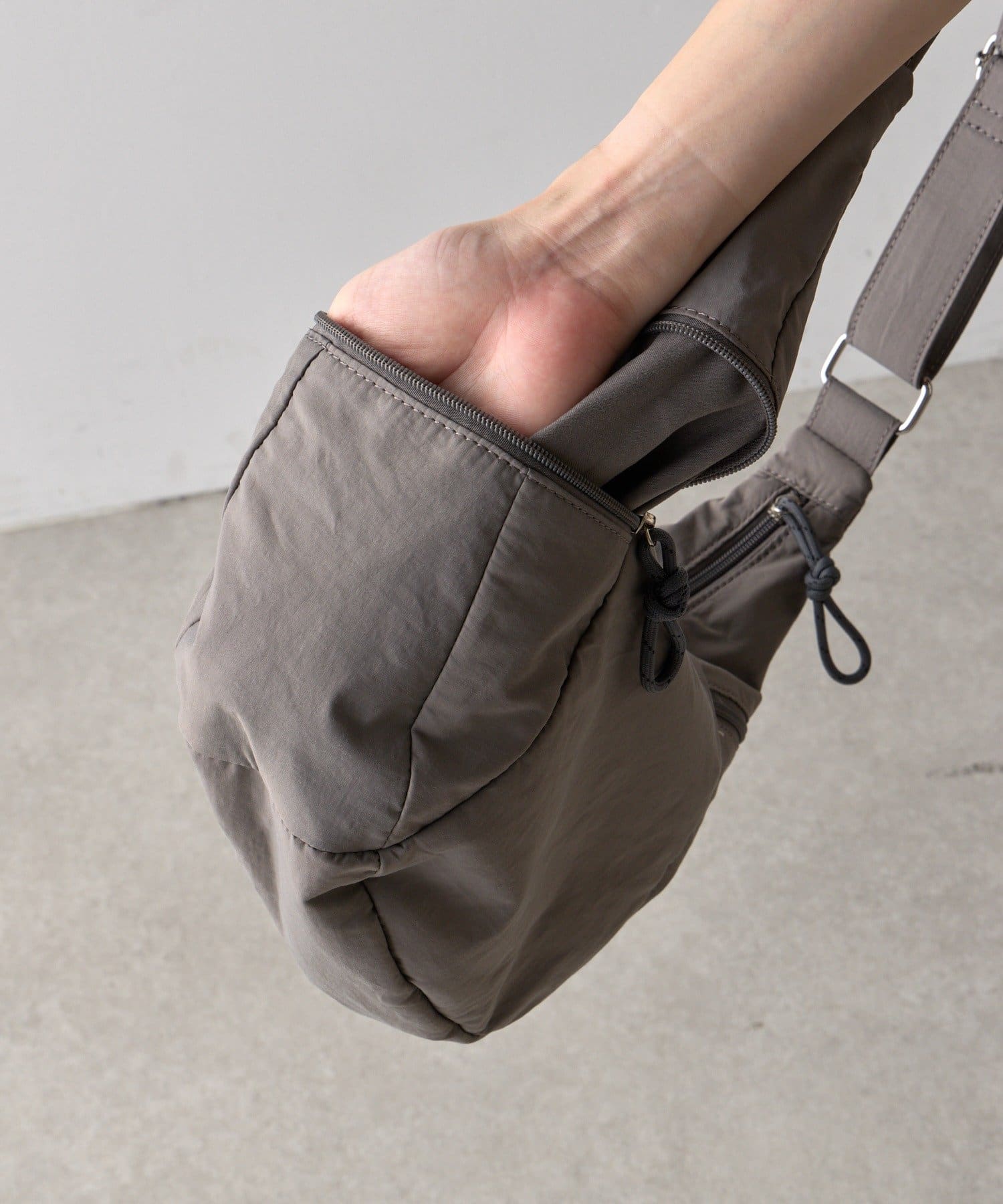 軽くてマットな綿ナイロン素材のショルダーバッグ。