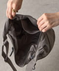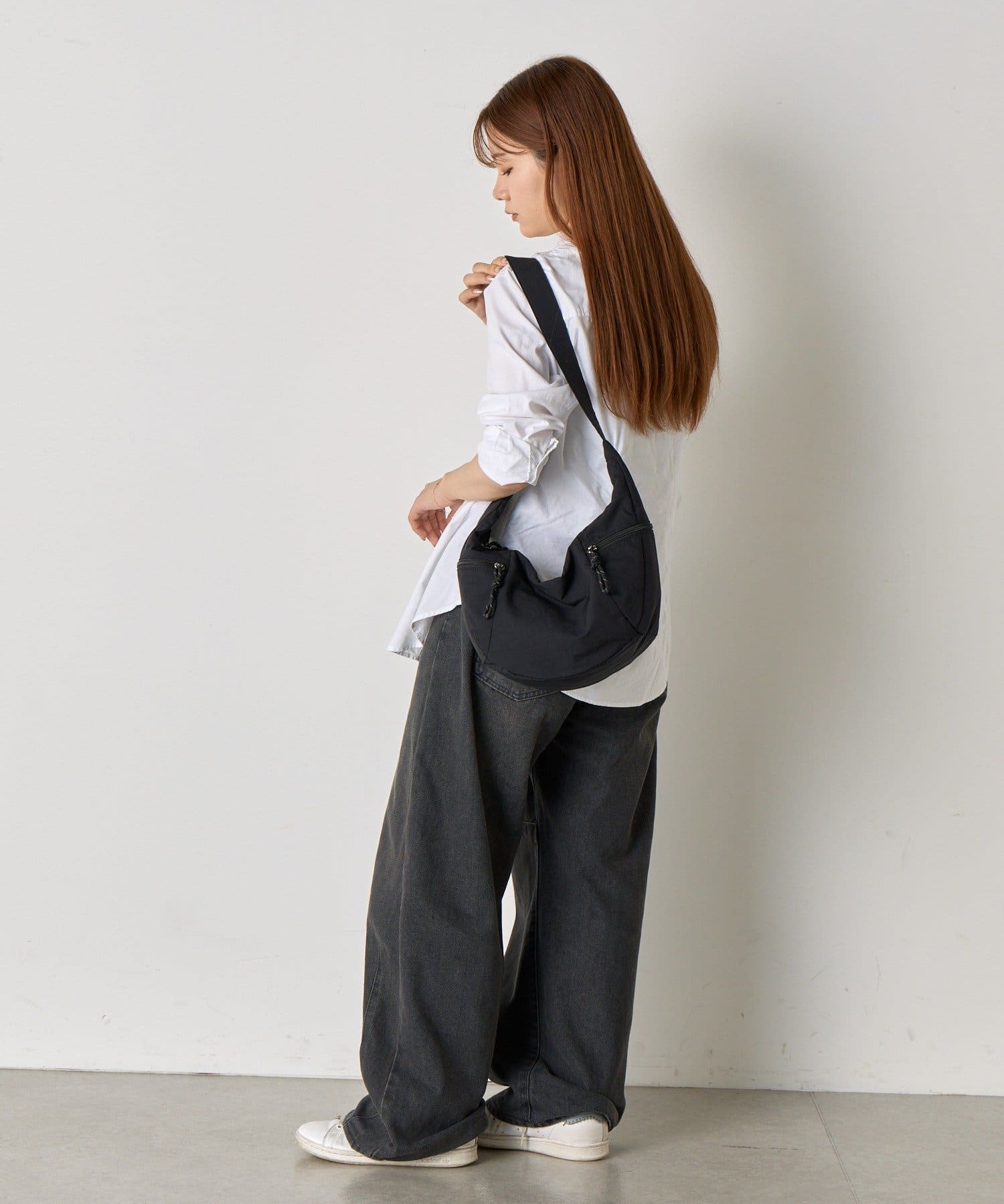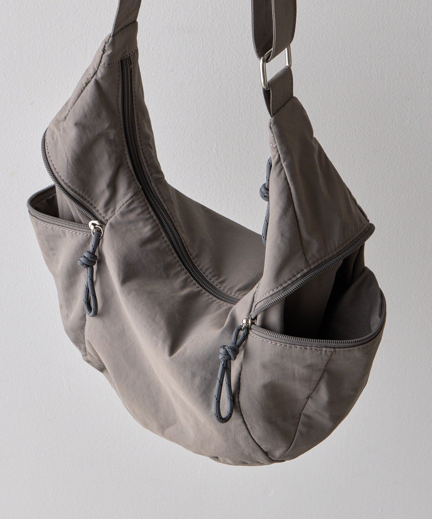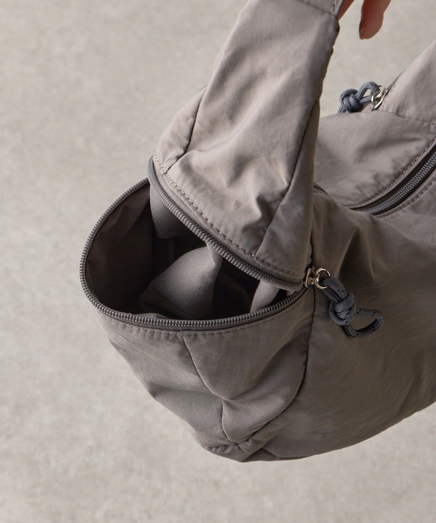 軽くてマットな綿ナイロン素材のショルダーバッグ。
