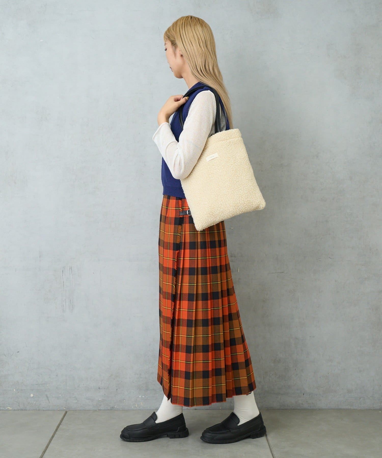 シンプルな形状とデザインでどんなコーデにもマッチ。秋冬ならではの、もこもことしたボア素材で存分に季節感を楽しめます。