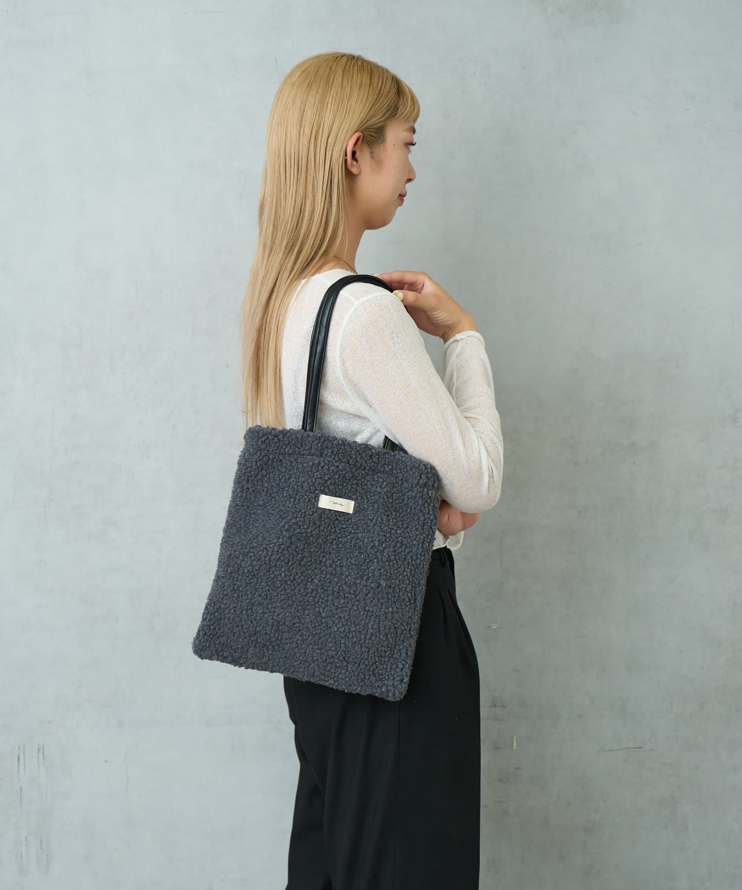 毎年人気のボア素材のトートバッグ。