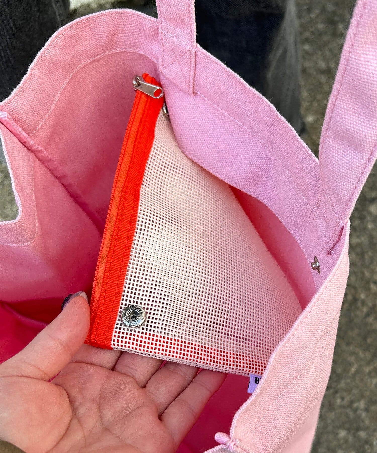 内ポケットのメッシュポーチは取り外し可能。