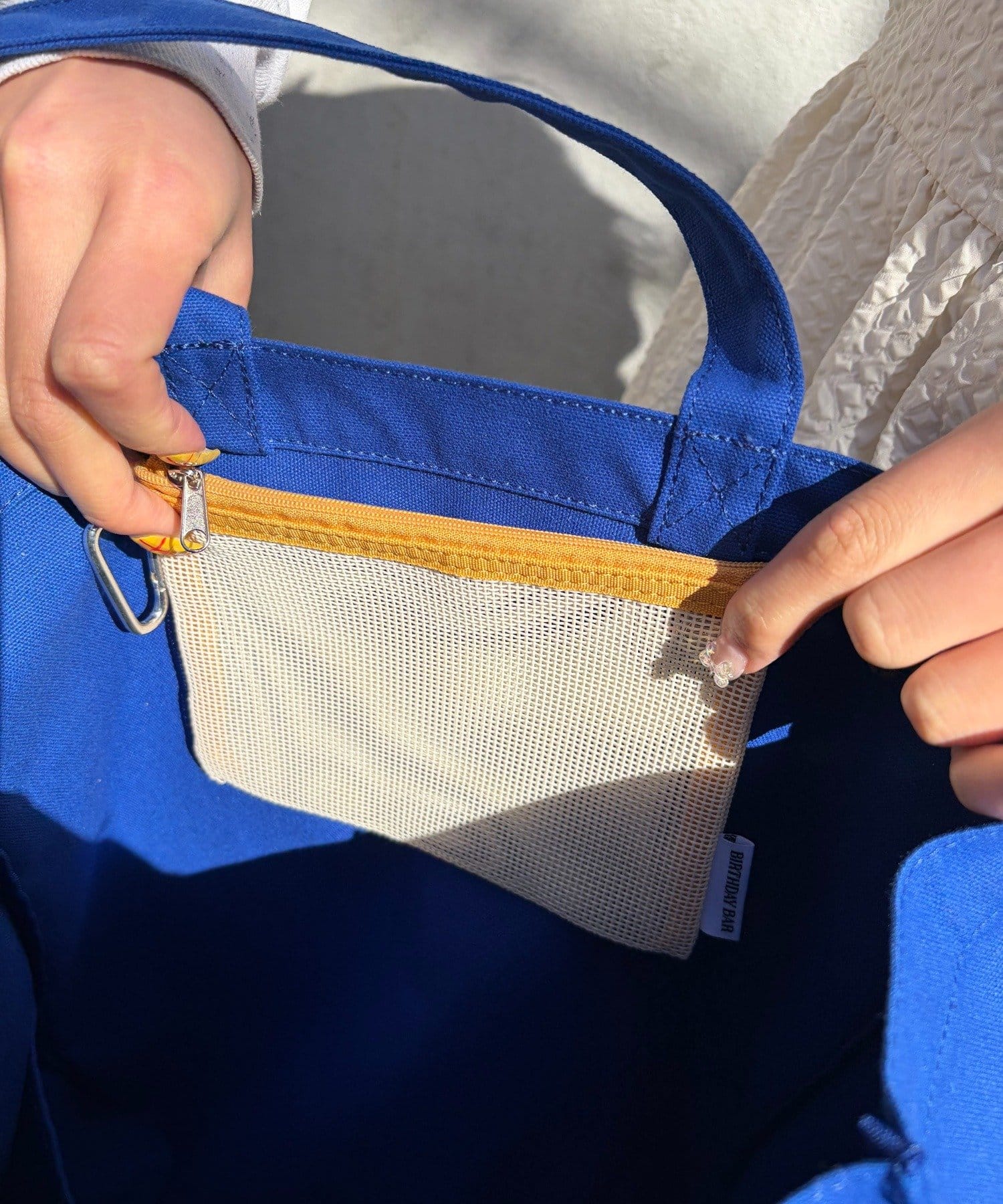 小物類の収納にはもちろん、カラビナ付きなのでバッグに外付けするのもオススメ◎