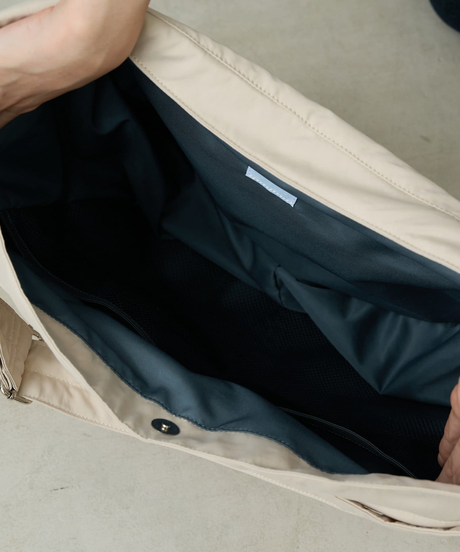 中は3つの大きめのポケットがついており内2つはメッシュポケットなので収納しているものが一目で分かります。