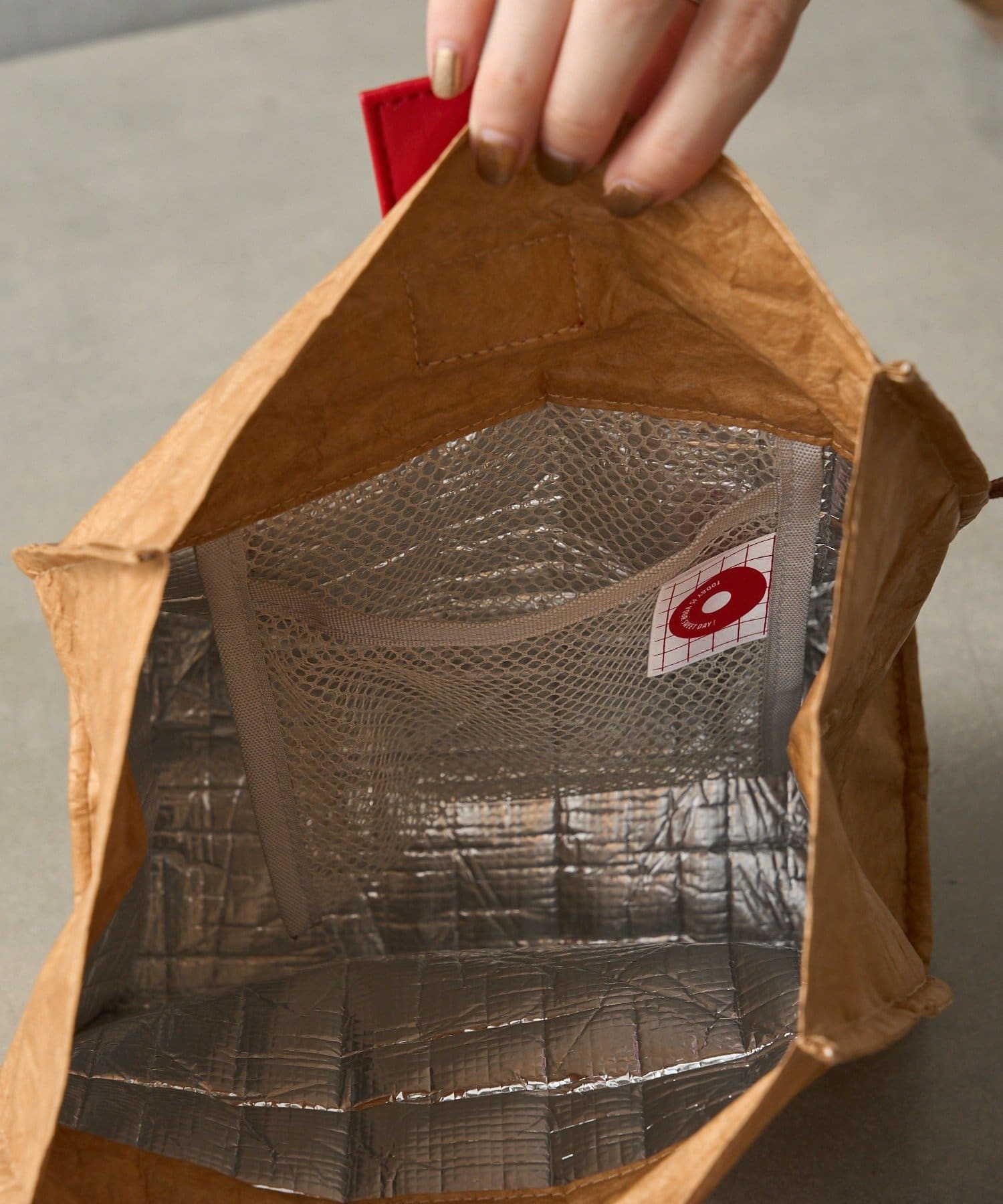 内ポケットがあるので保冷剤の収納が可能、キャンプやピクニックなどアウトドアでも活躍します。