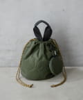 ふっくらとしたシルエットが愛らしい、ナイロンのリップストップ生地をキルトにした巾着バッグ。