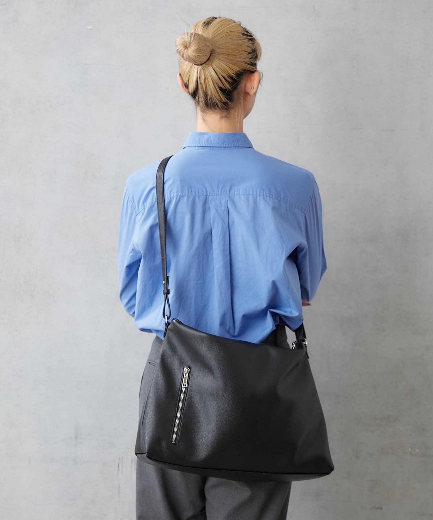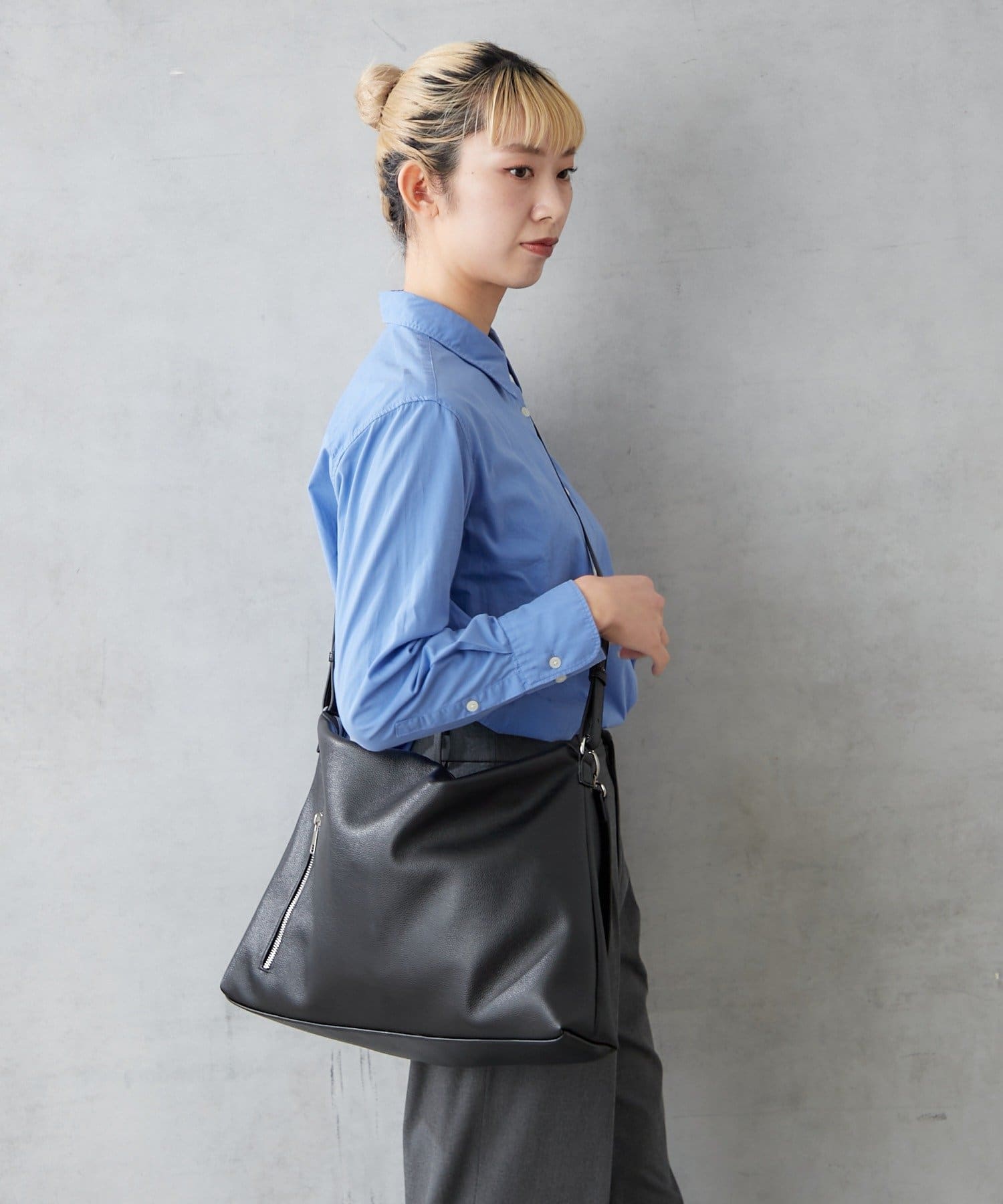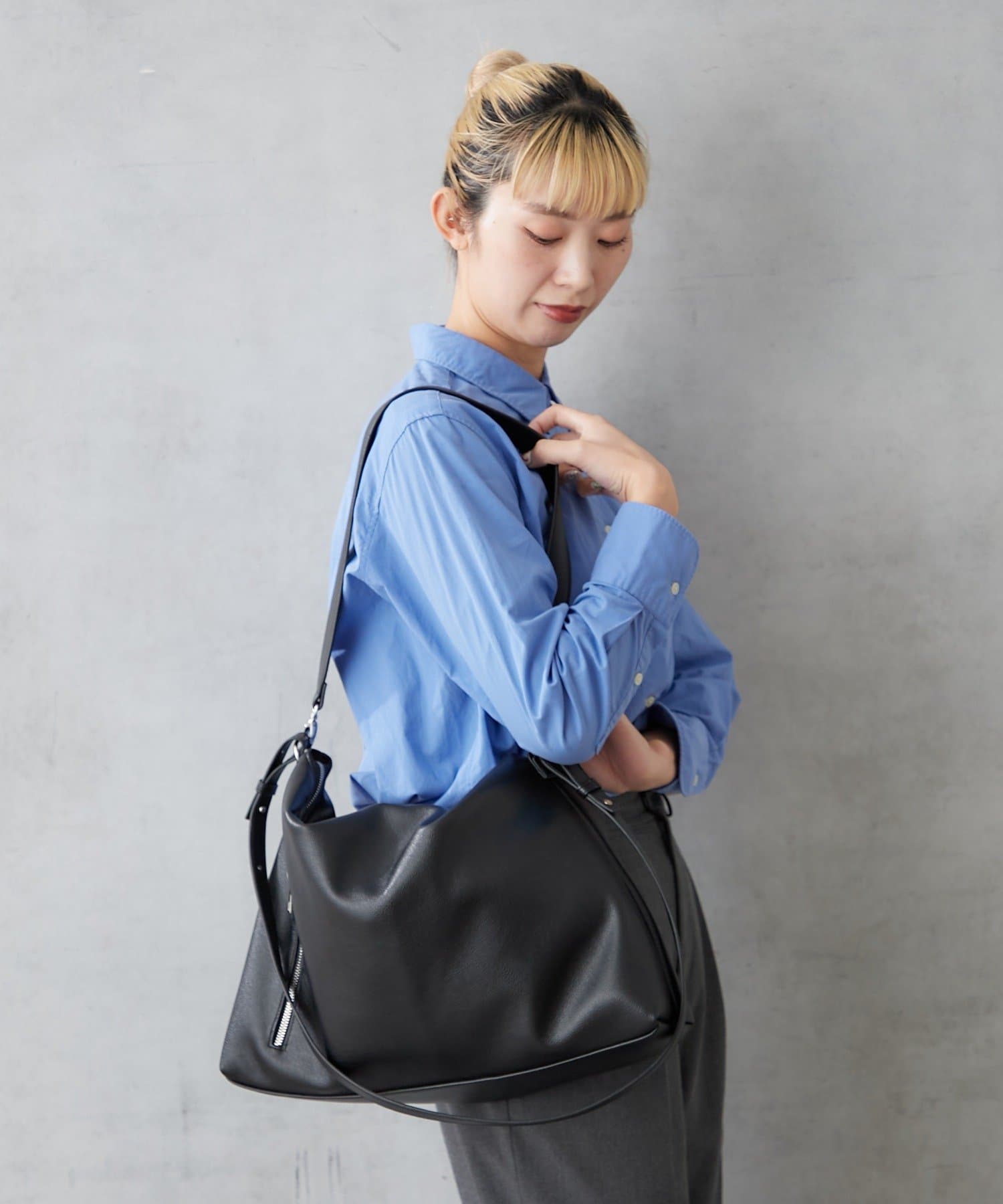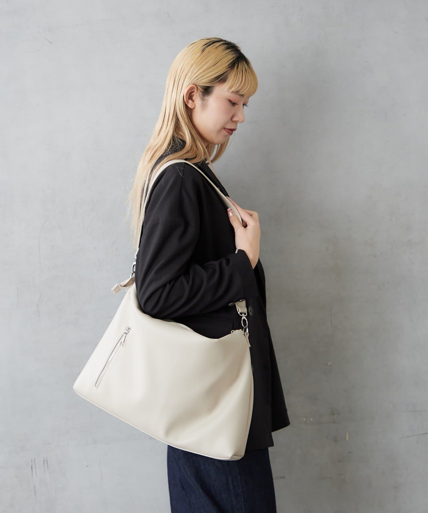軽くてソフトなシュリンクフェイクレザーを使用したショルダーバッグ。