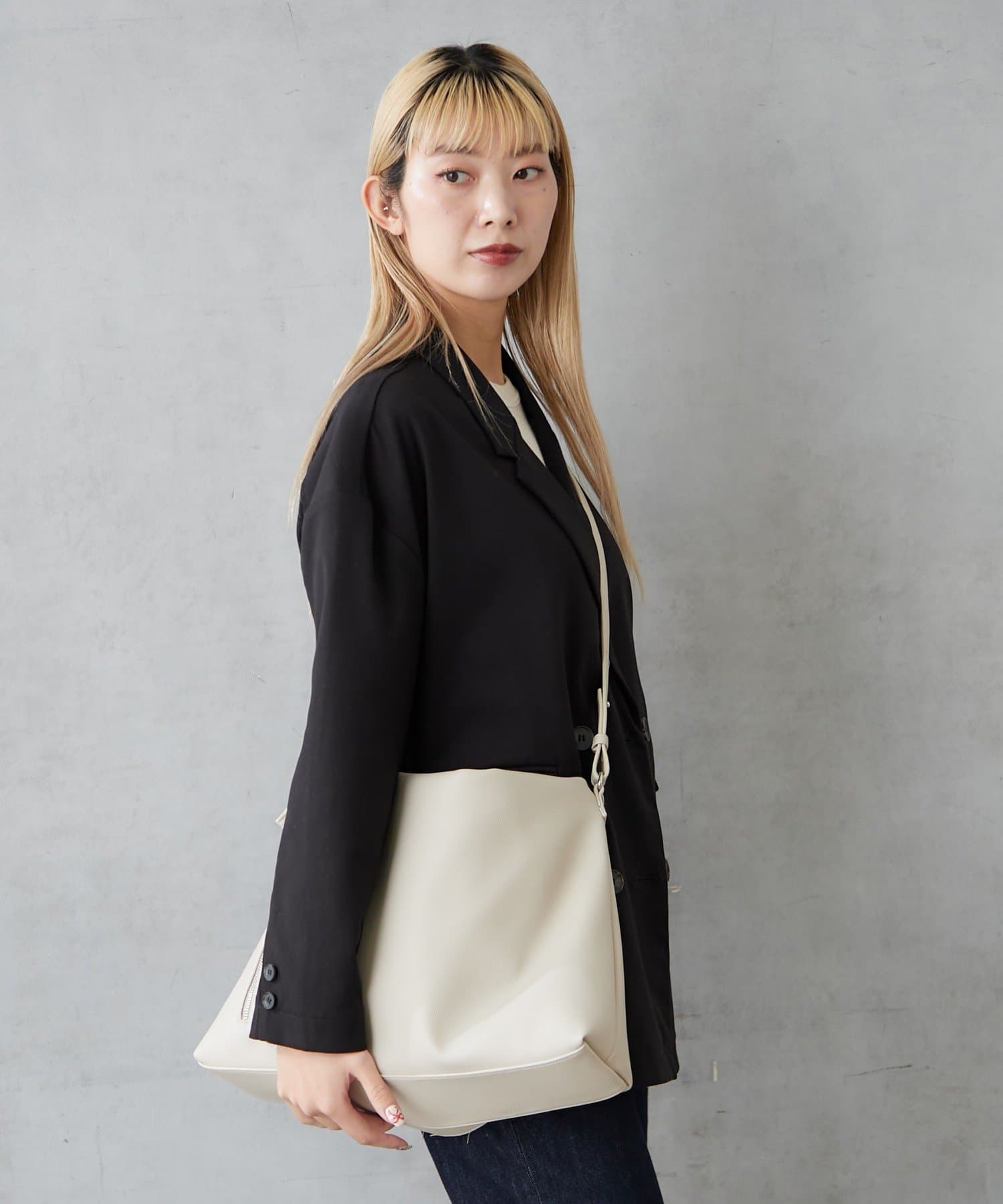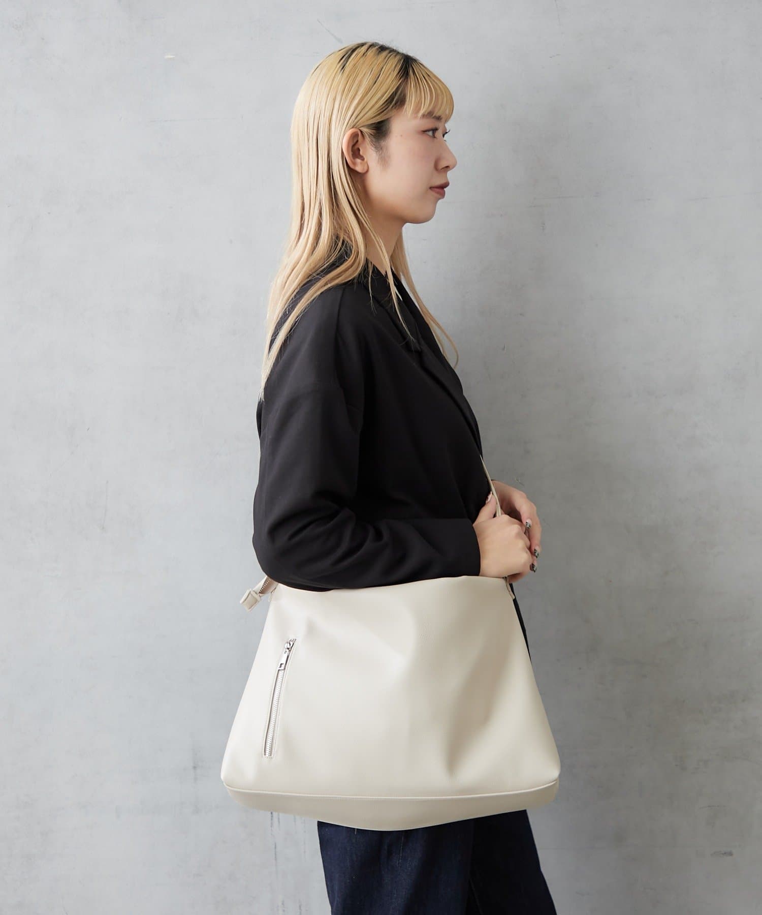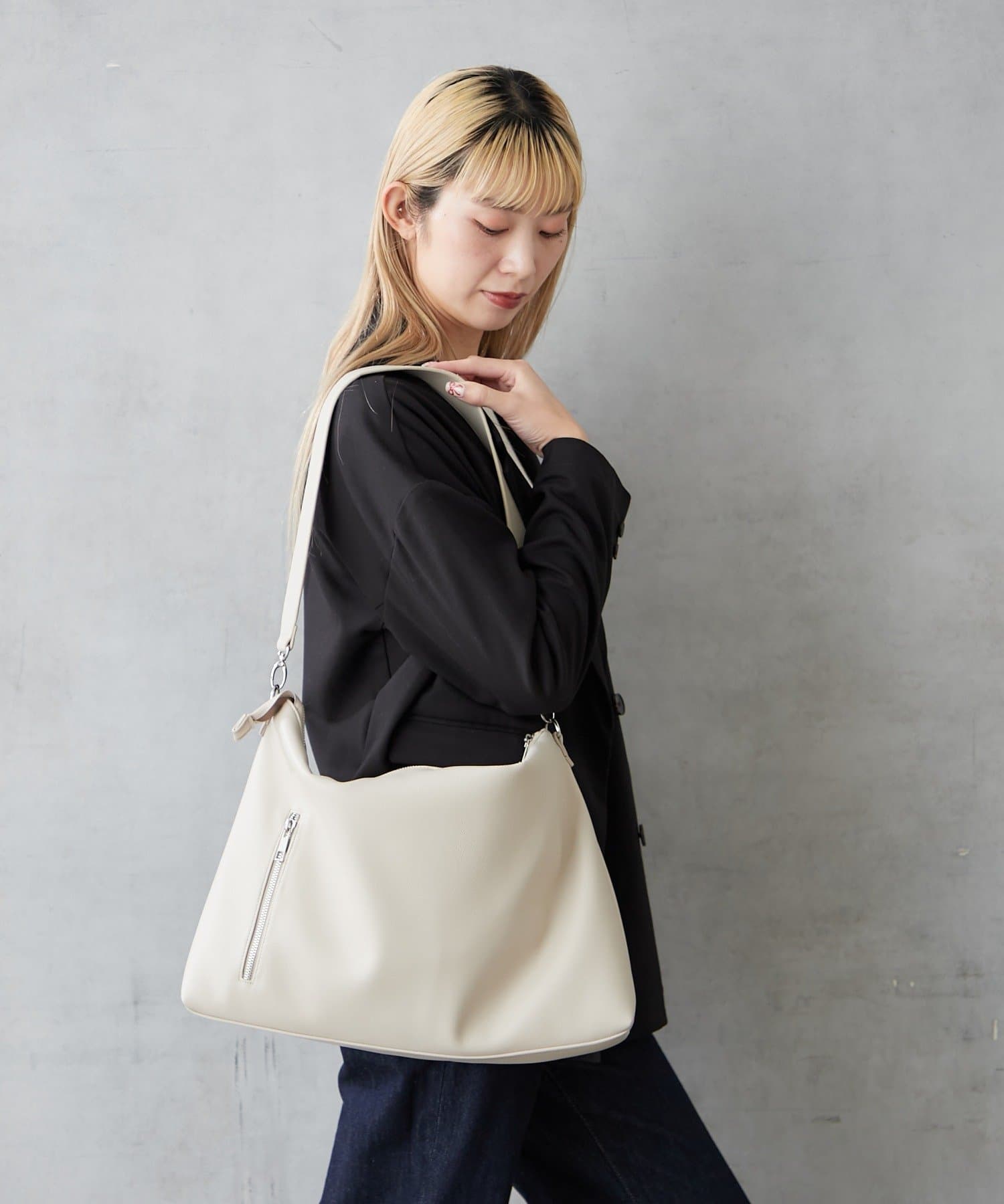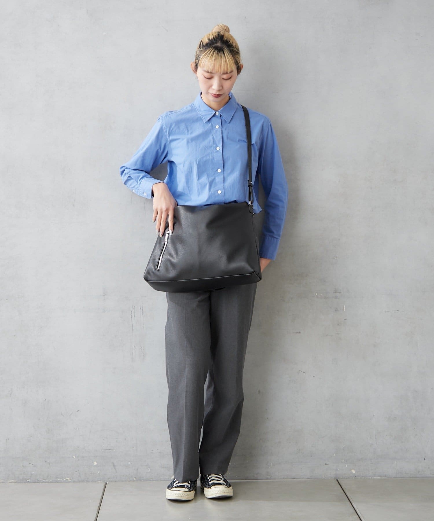 軽くてソフトなシュリンクフェイクレザーを使用したショルダーバッグ。