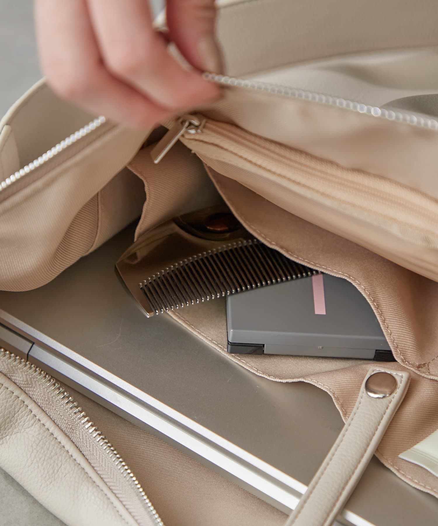 A4サイズがすっぽり入るサイズ感、ファスナー付きなのでしっかり収納可能です。