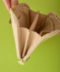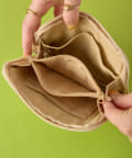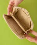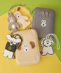 刺繍で施された顔と、立体的な耳が愛らしいデザイン。アコーディオンタイプなので収納がしやすく、パスポート、小銭、紙幣、カードなどを分けて収納でき、中が見やすいのもうれしいポイントです。Dカン付きなので、旅行中ポーチをなくさないようストラップやキーリングを付けることも可能。旅先でも普段使いでも様々なシーンでご使用できます。