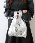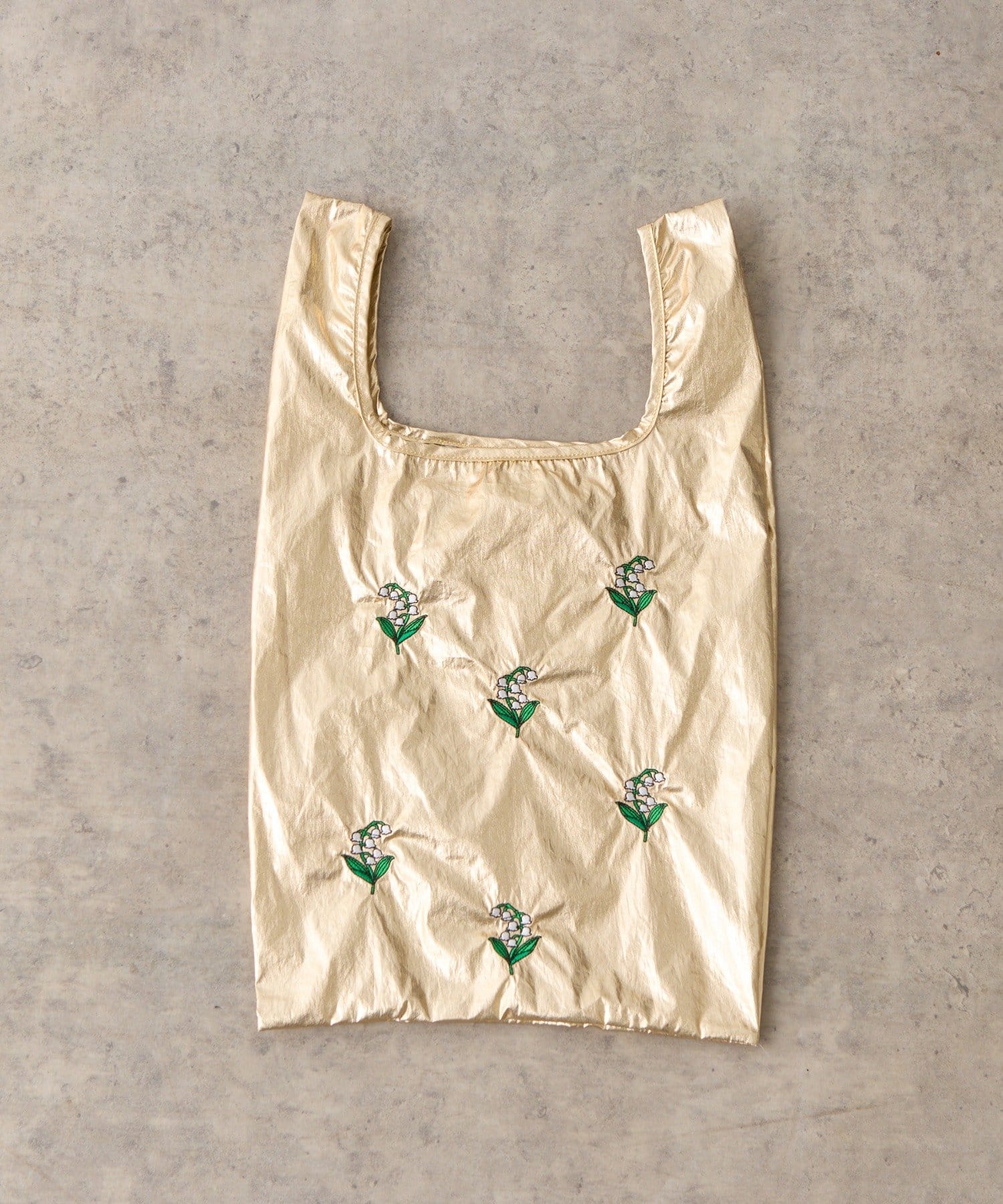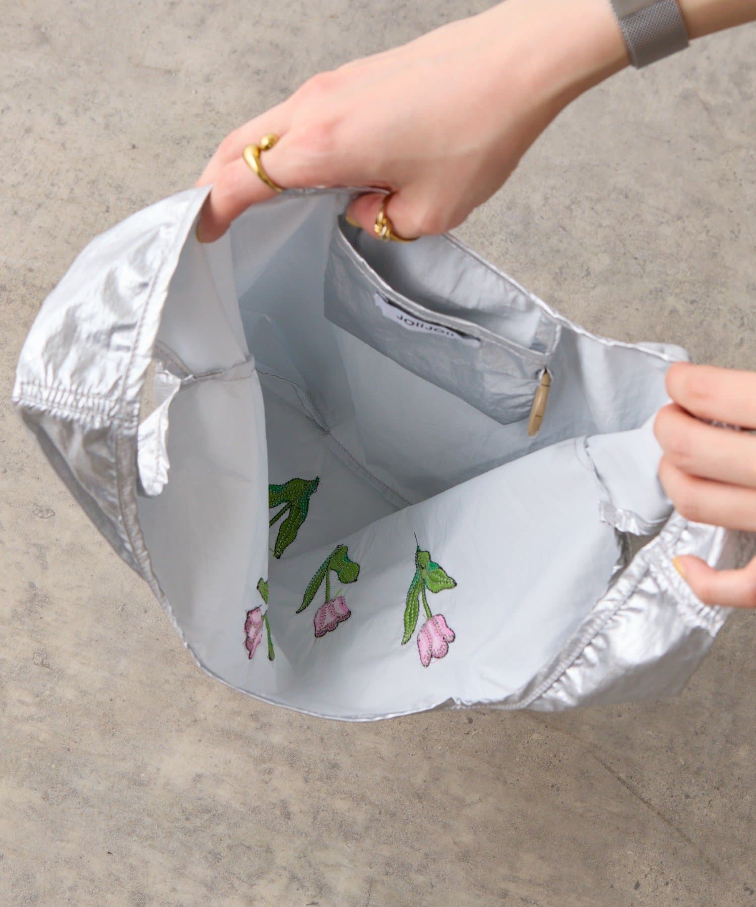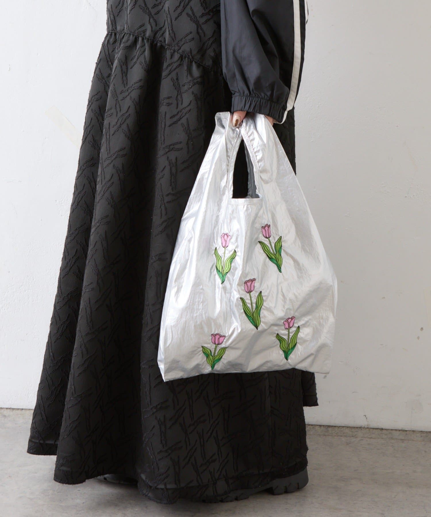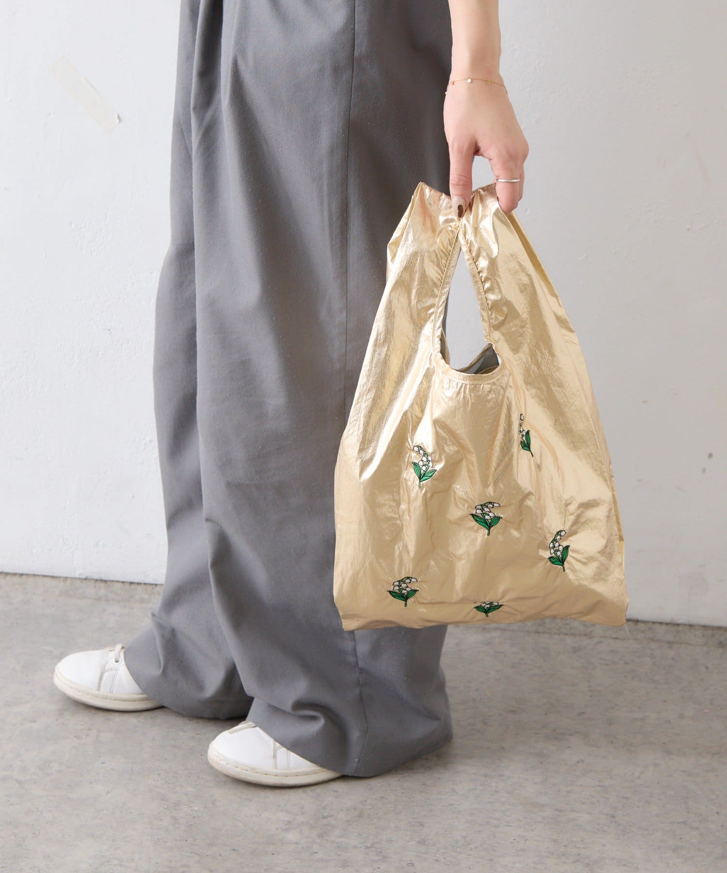 春に咲くお花をデザインモチーフにした軽量バッグ。メタリック素材にフラワー刺繍を施しており、ベーシックな形ながら他にないデザインが注目度大!カラビナがついたポーチつきで、使わないときはコンパクトに折り畳んで収納可。いつも使うバッグやパンツのベルトループに掛けても◎。普段のお出かけはもちろん、エコバッグやサブバッグとしても活躍します。