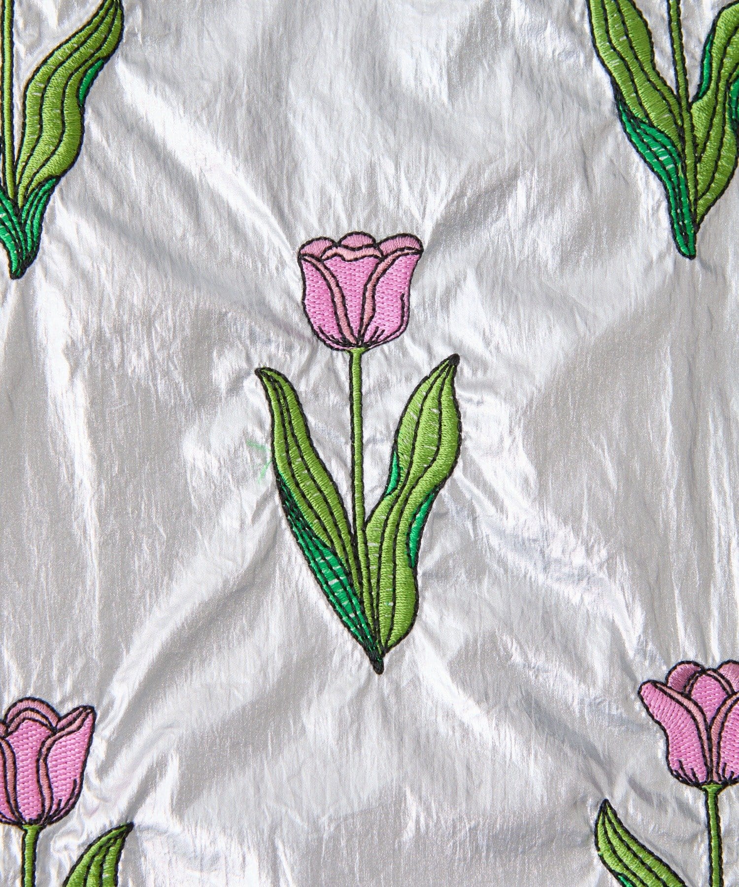 メタリック×フラワー刺繍が目を惹く、春に持ちたい1枚