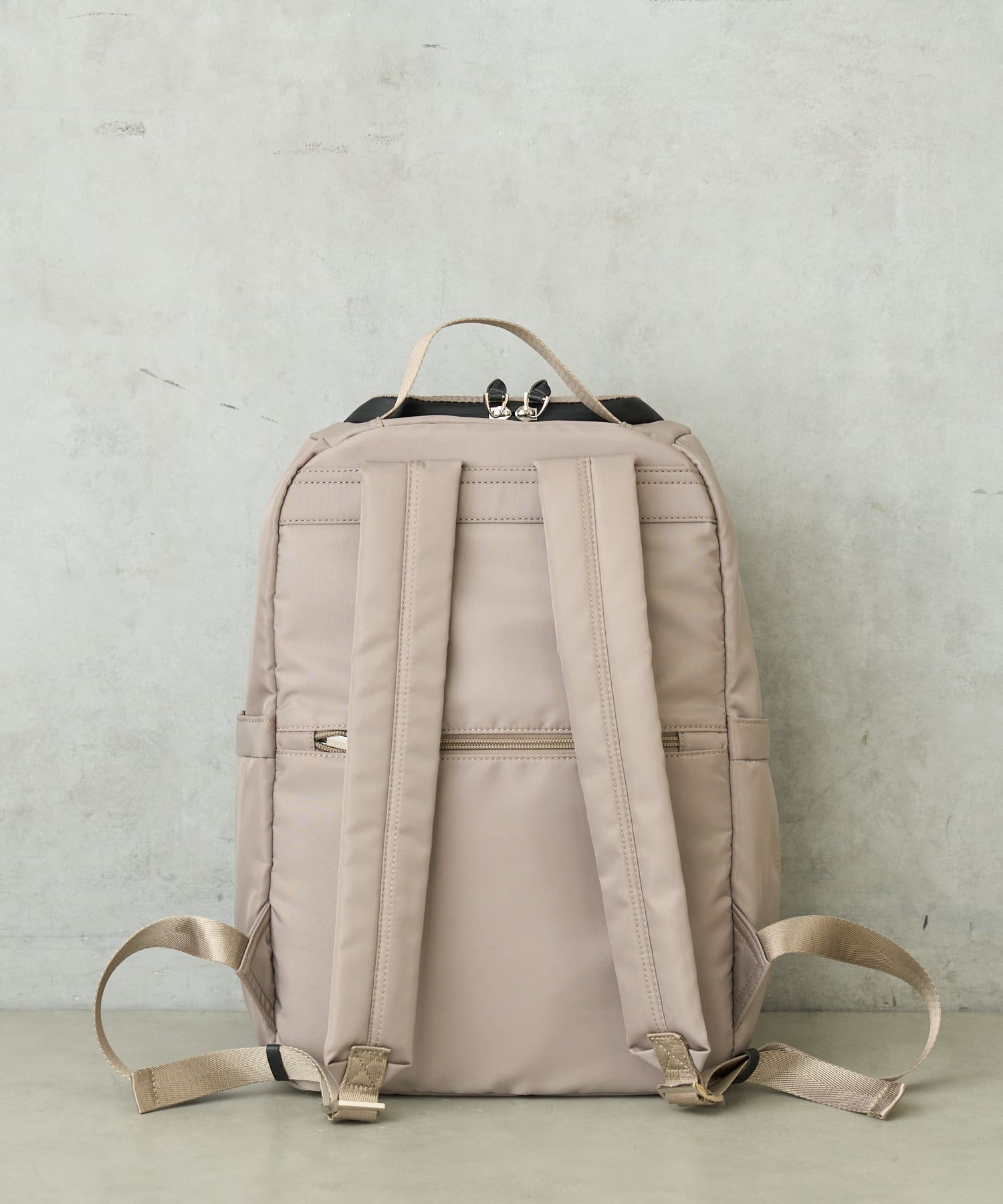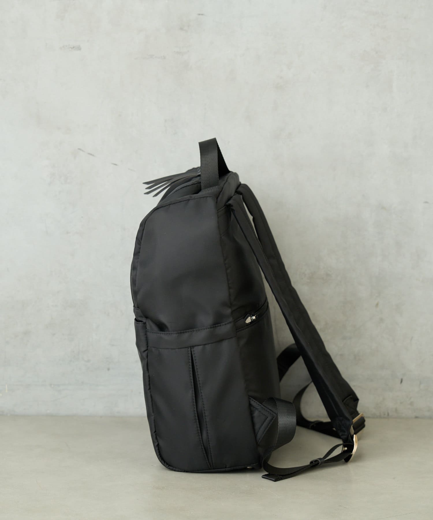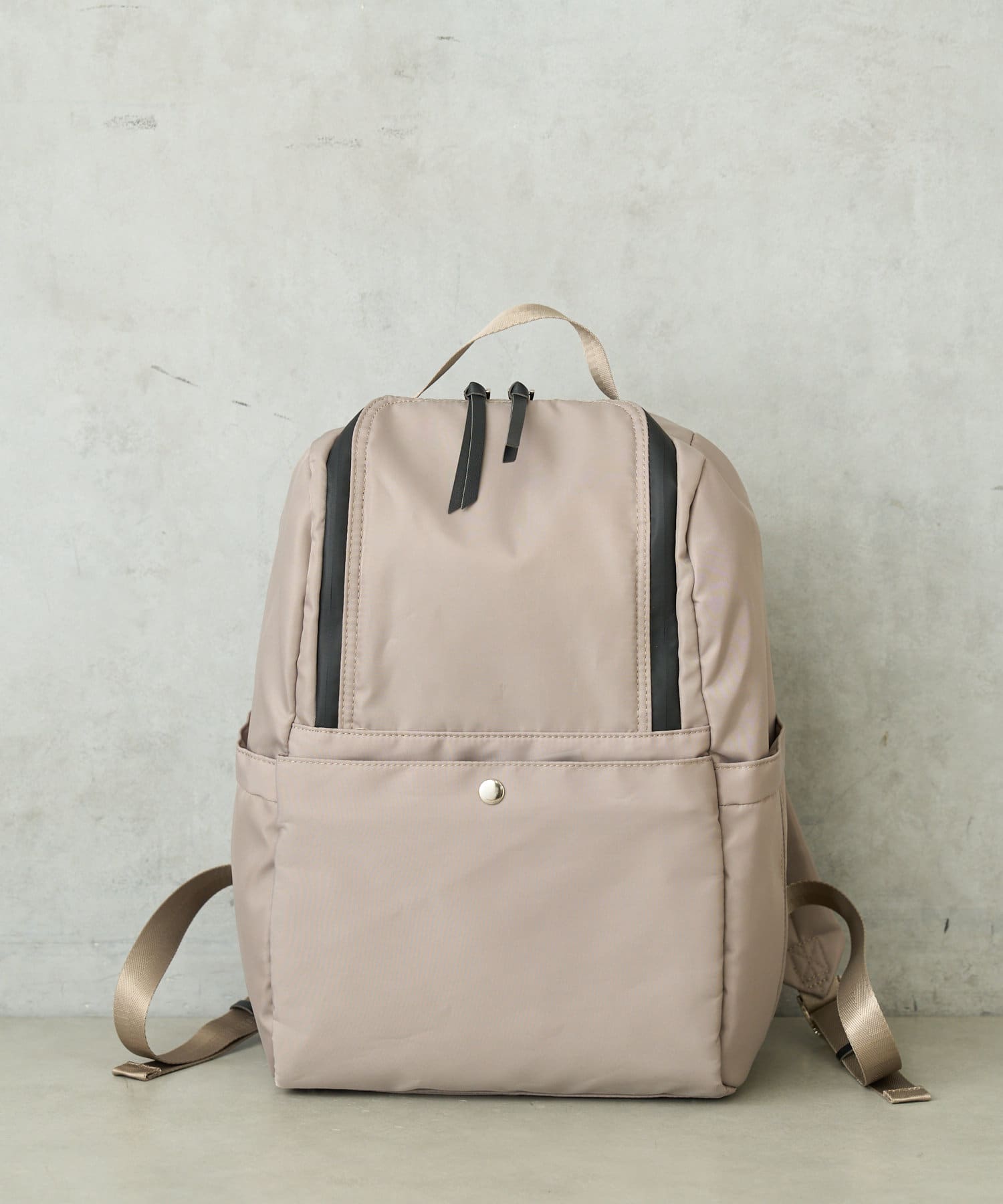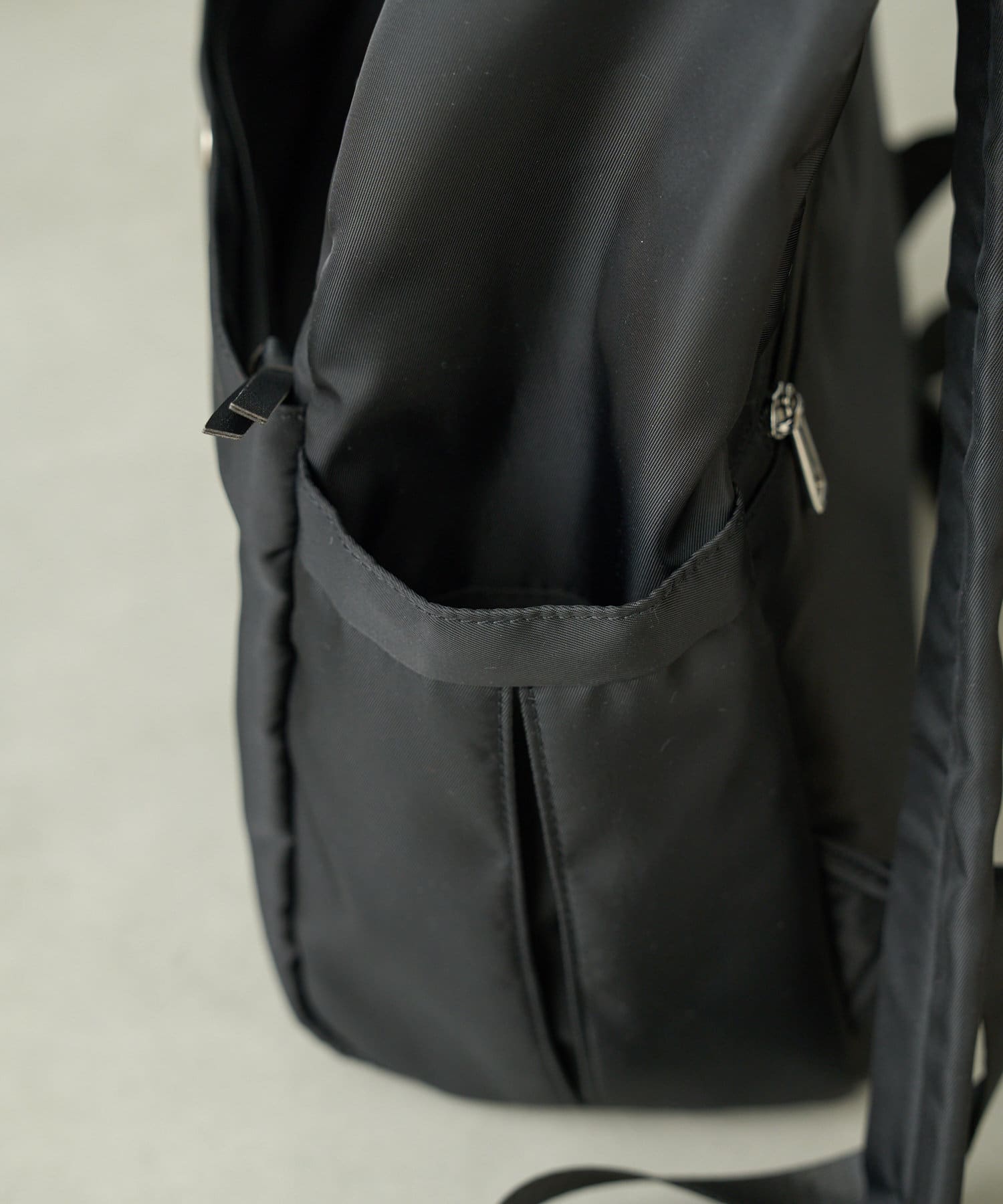 撥水加工されている生地を使ったリュックサック。ファスナーにも防水加工を施しているので少しの雨なら内側は濡れずに快適にお使いいただけます。