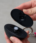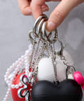 容器の色味に合うキーリングをセットしています。また簡単に切れてしまうボールチェーンではなく、ブレスレットに使用するシルバーチェーンを使用。