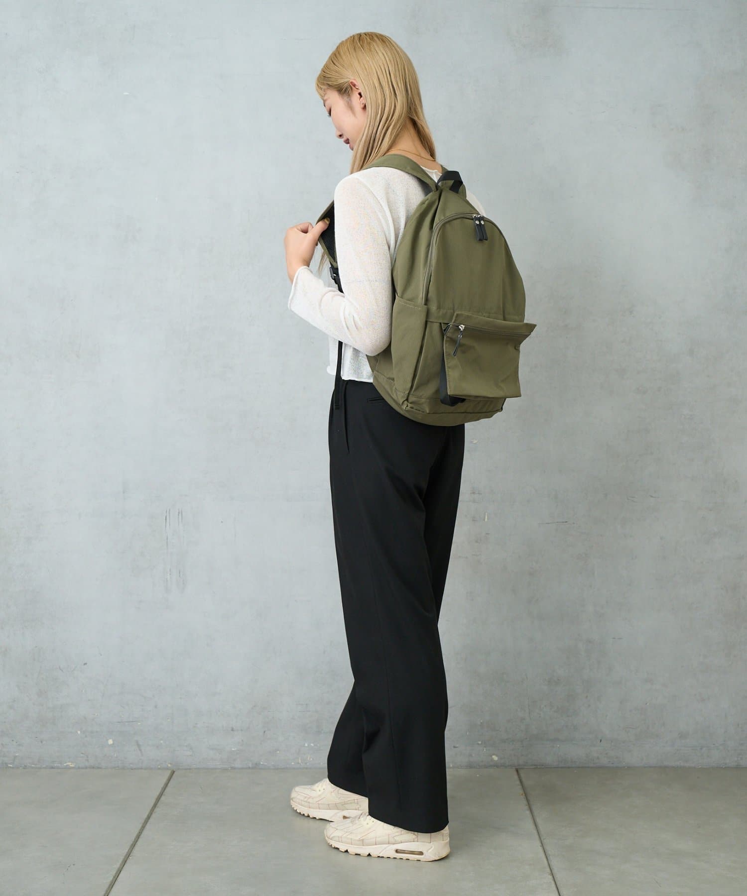 耐久性に優れているポリエステル素材を使用した、軽量でデイリーにお使いいただけるバッグ。