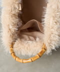 ふわふわのファーとハンドル部分の竹の組み合わせが目を引くトートバッグ。