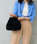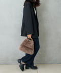 ファー×バンブーハンドルの異素材個性派トートバッグ