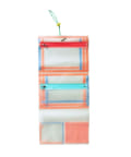 クリア素材なので、中身が一目で分かるのも嬉しいポイント。紐付きなので、吊り下げて壁掛け収納もできます。