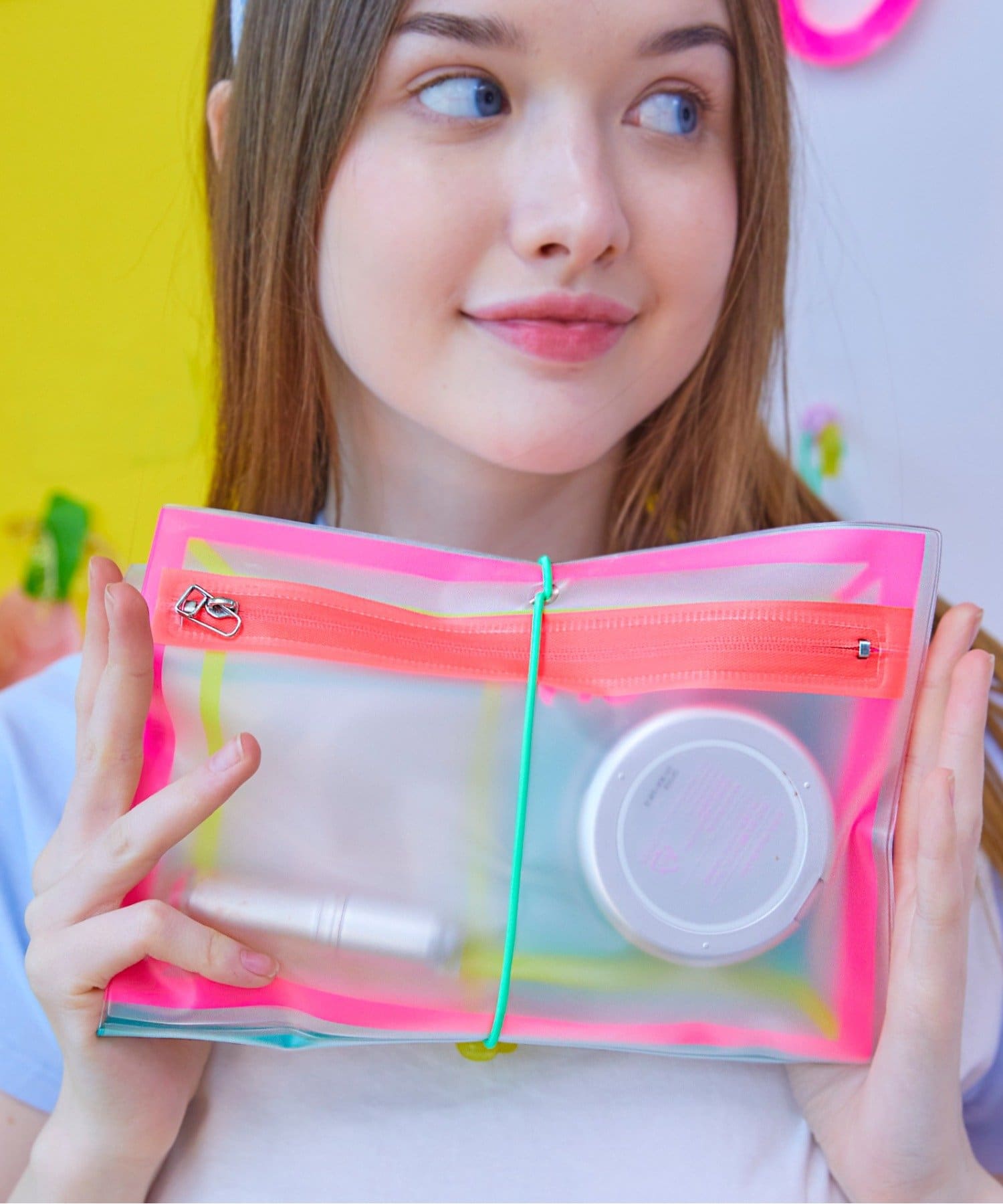 ネオンカラーで気分が高まる3段トラベルポーチ