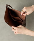 また内側は2つの仕切りで荷物の整理整頓に便利。仕切りはスナップボタン付きなので、使用用途によって固定したり、外して収納場所を増やしたりも◎