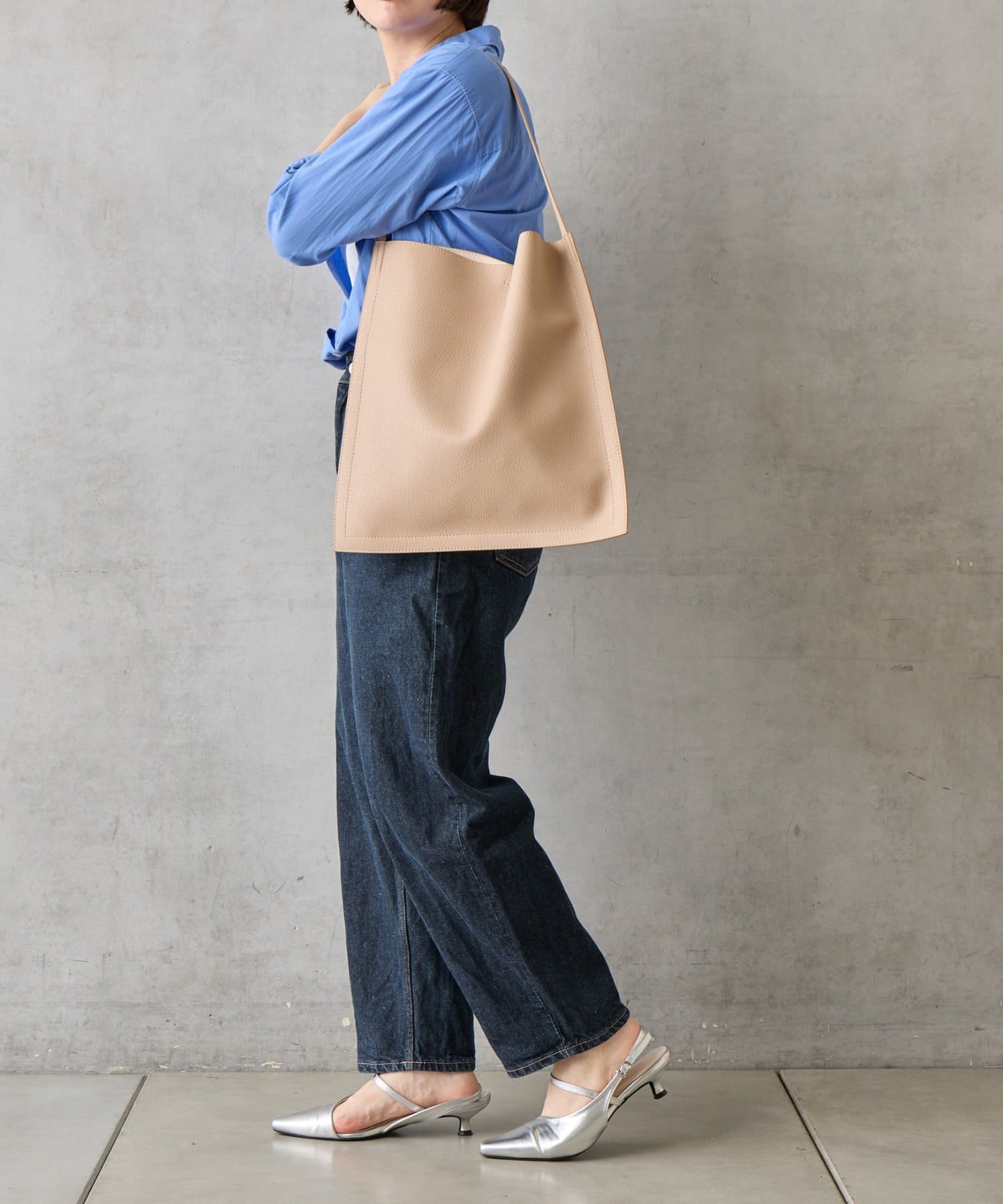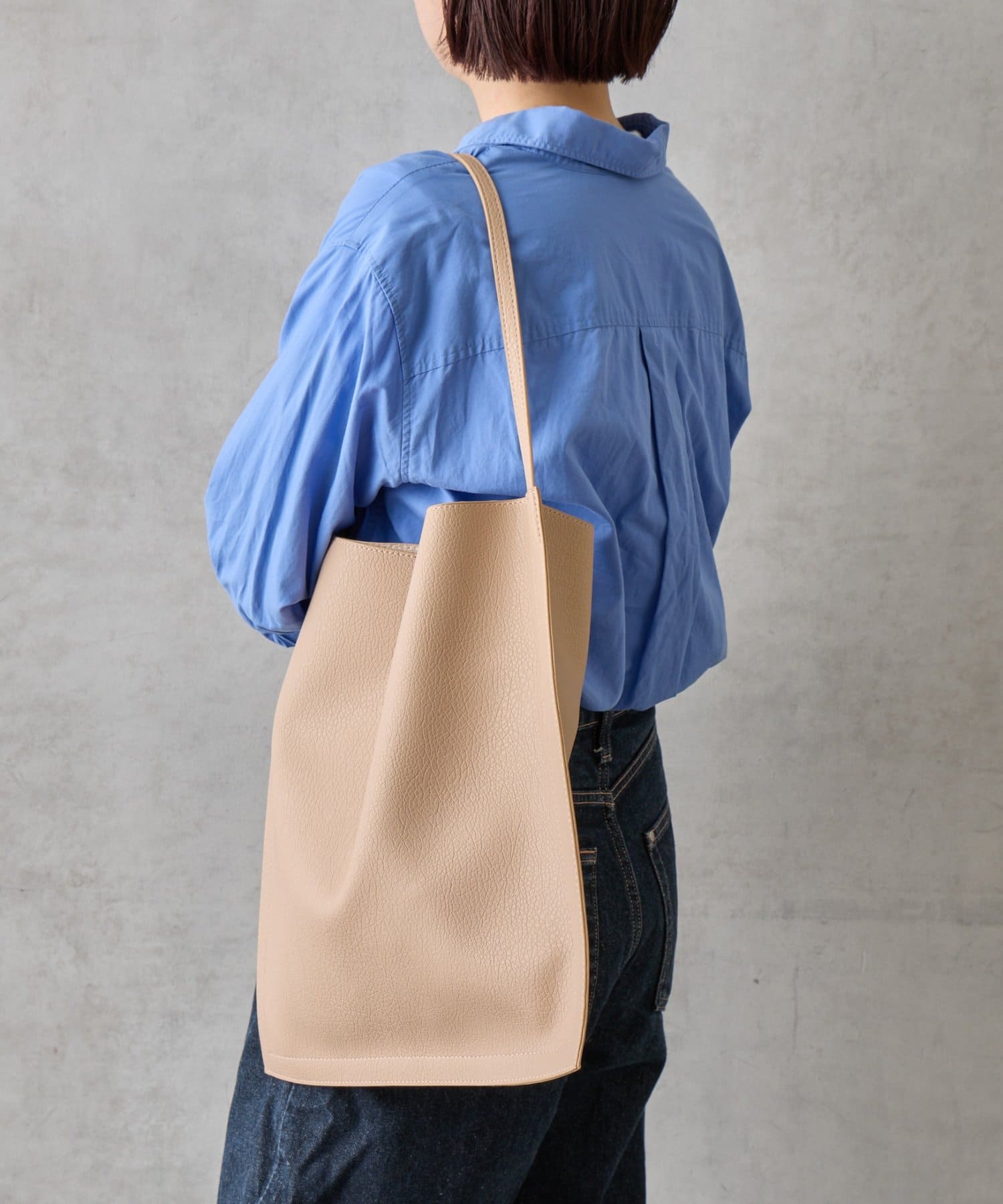 シボ感のあるフェイクレザーを使用した、上品な風合いのバッグ。