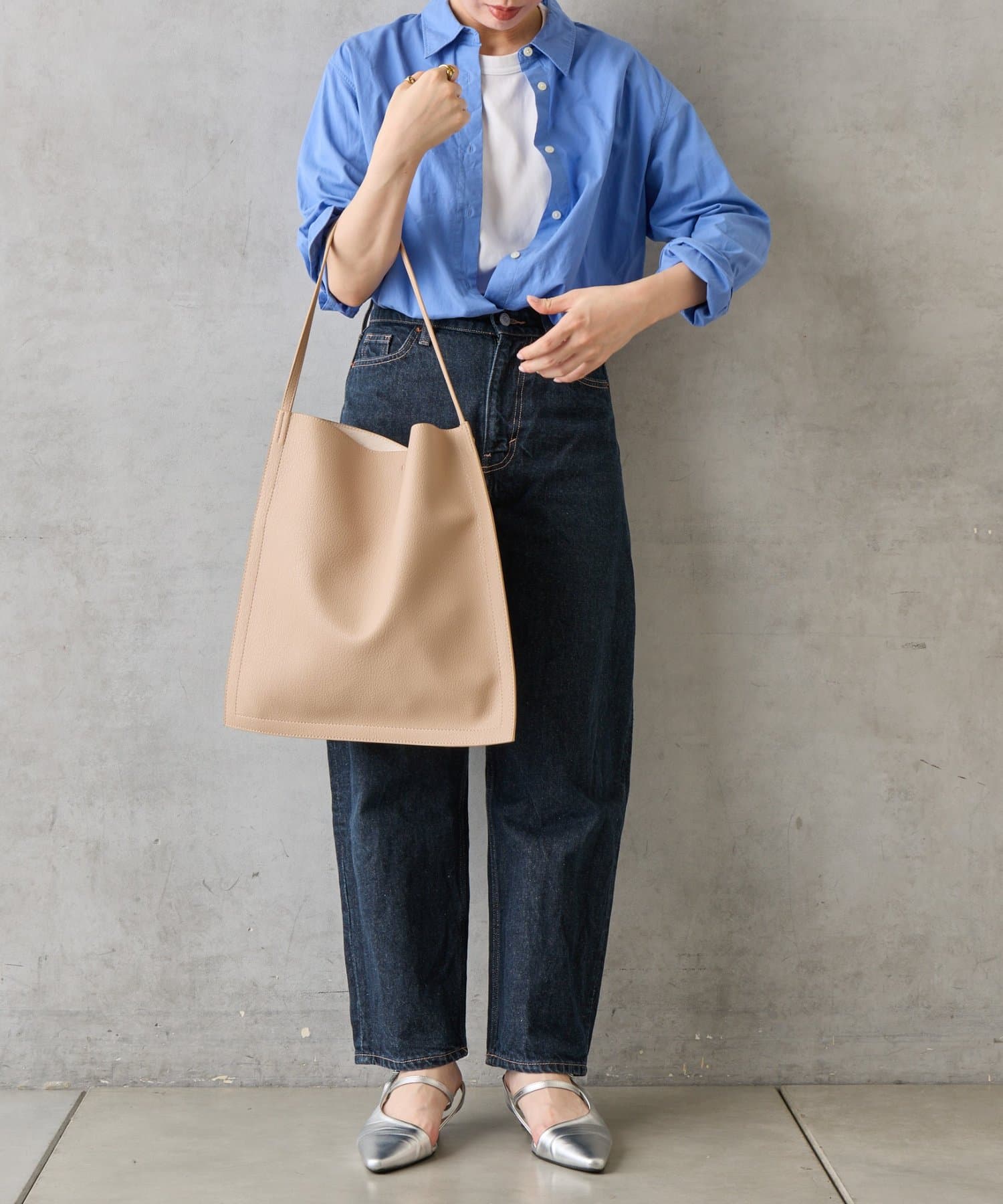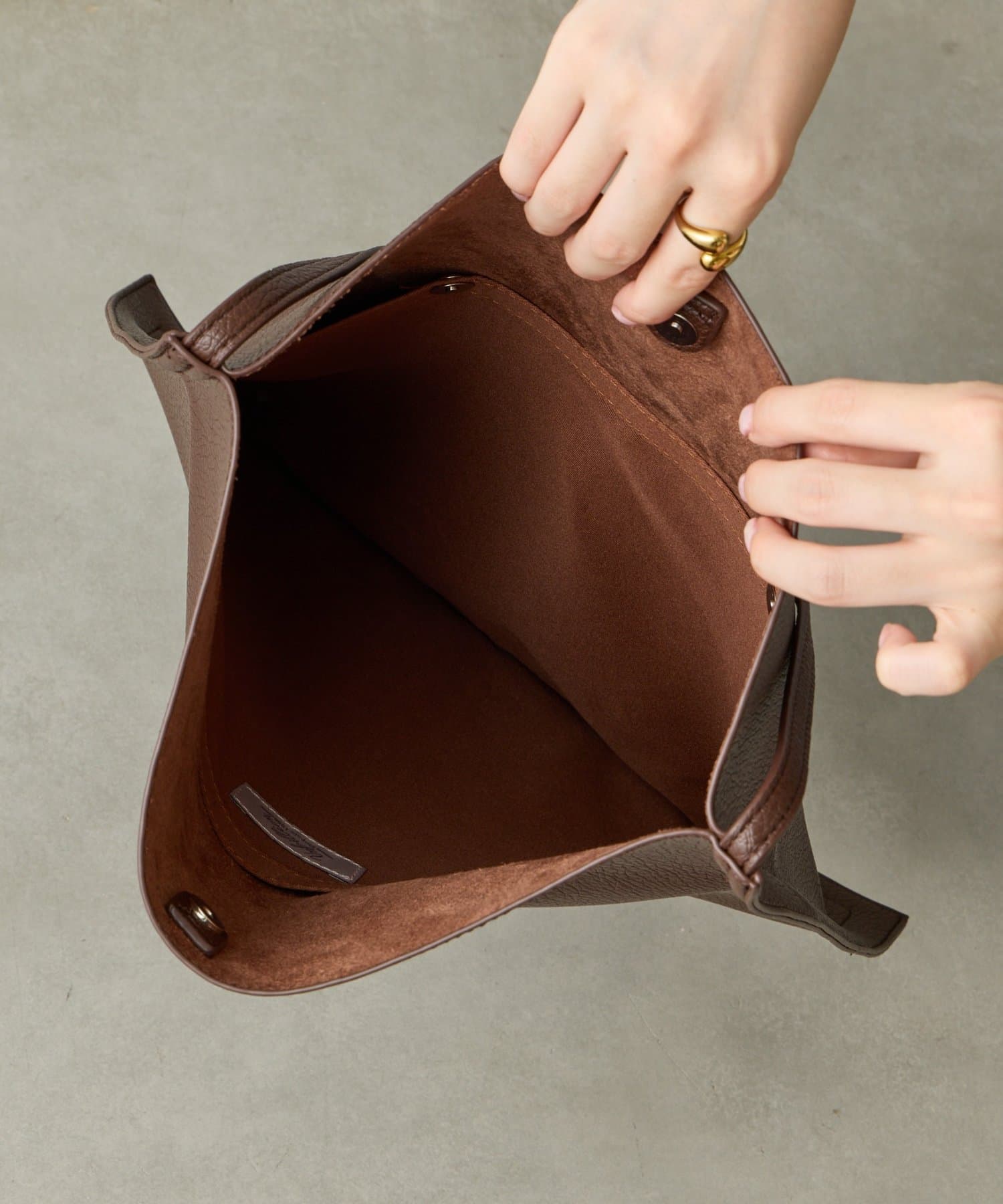 長めのショルダーで肩掛けもしやすく、開口部はマグネットホック式で開閉がスムーズに行えます。