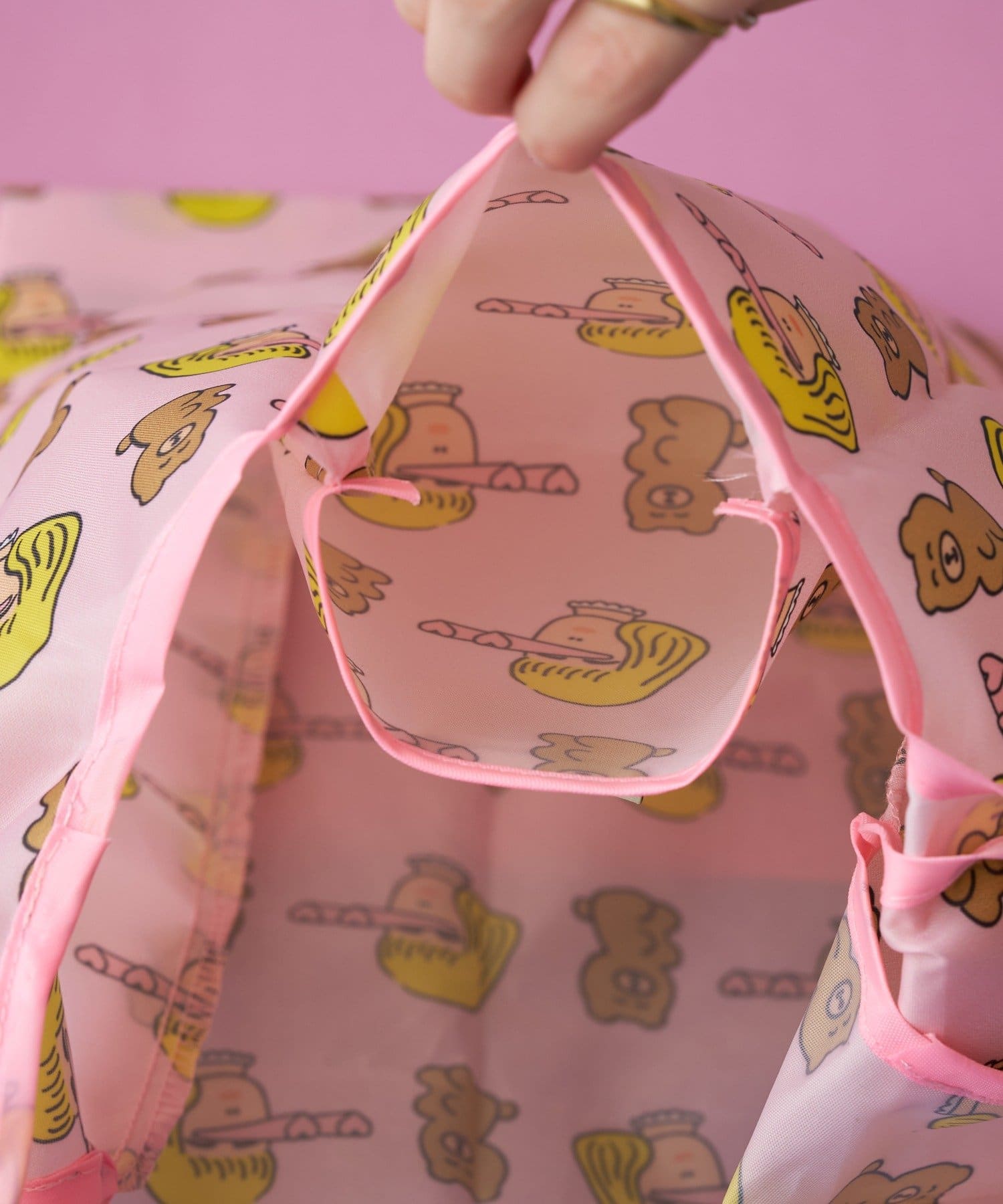 ユニークで可愛らしいデザインに、蛍光ピンクのバイアスでさらにポイントをプラス!