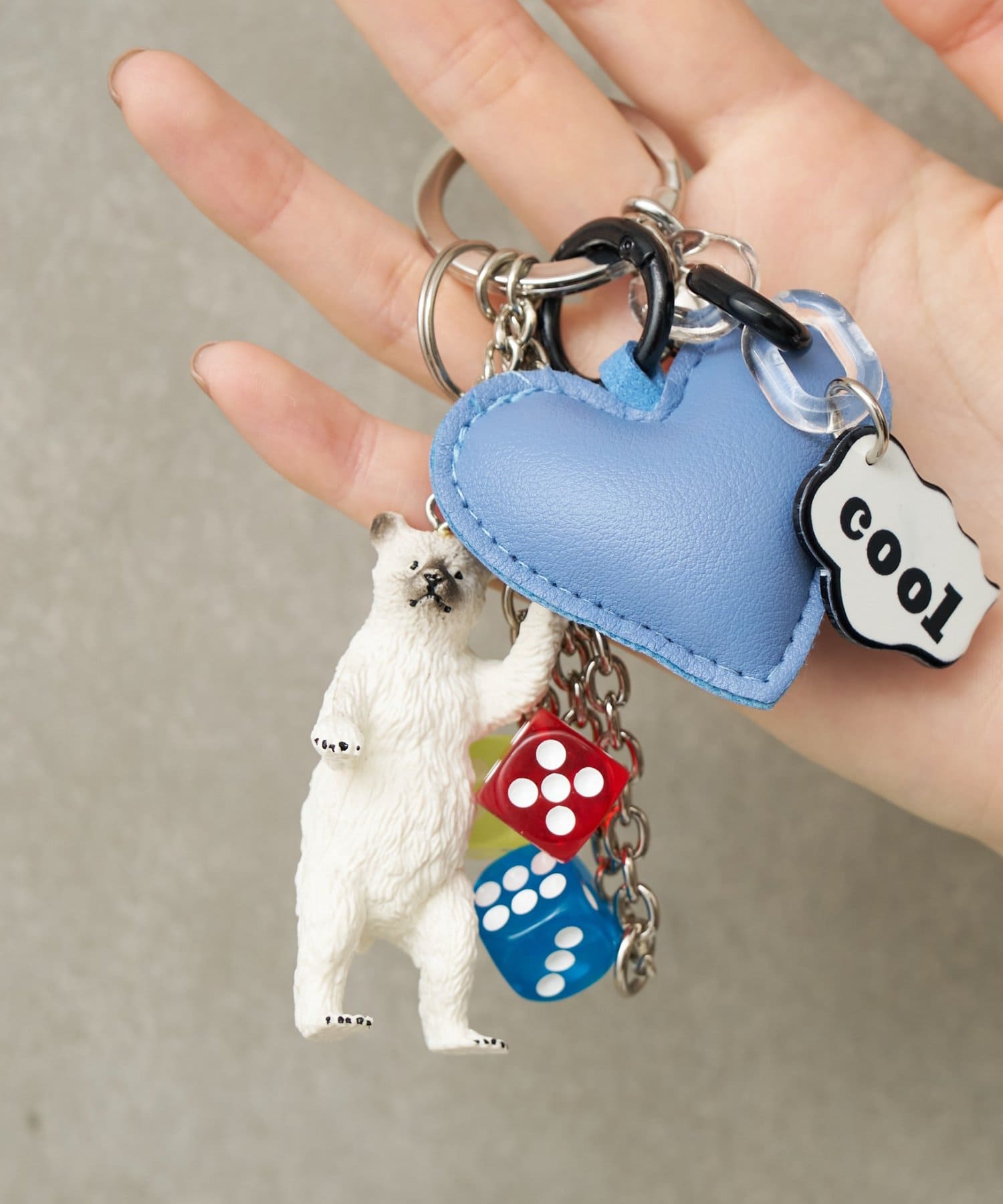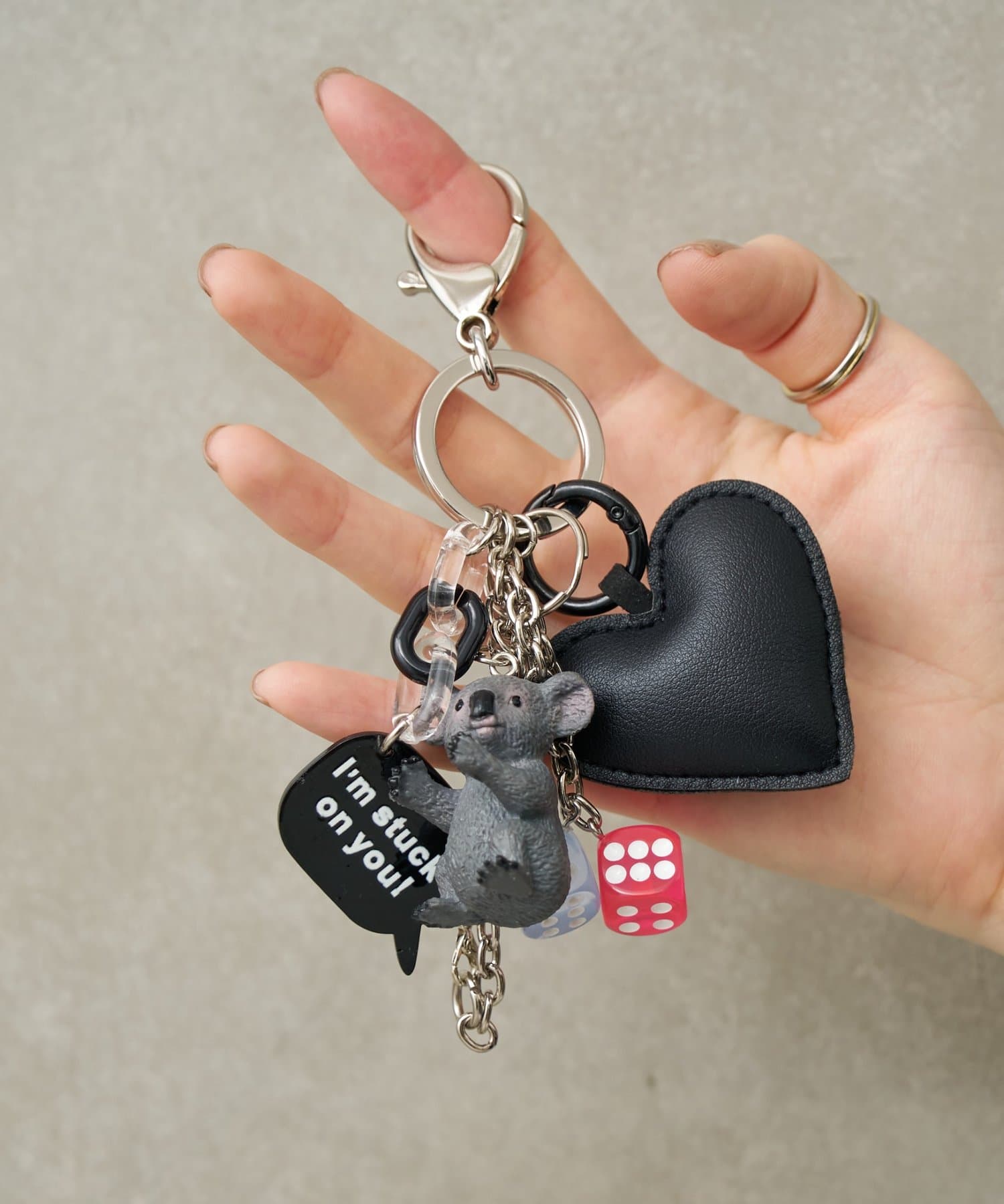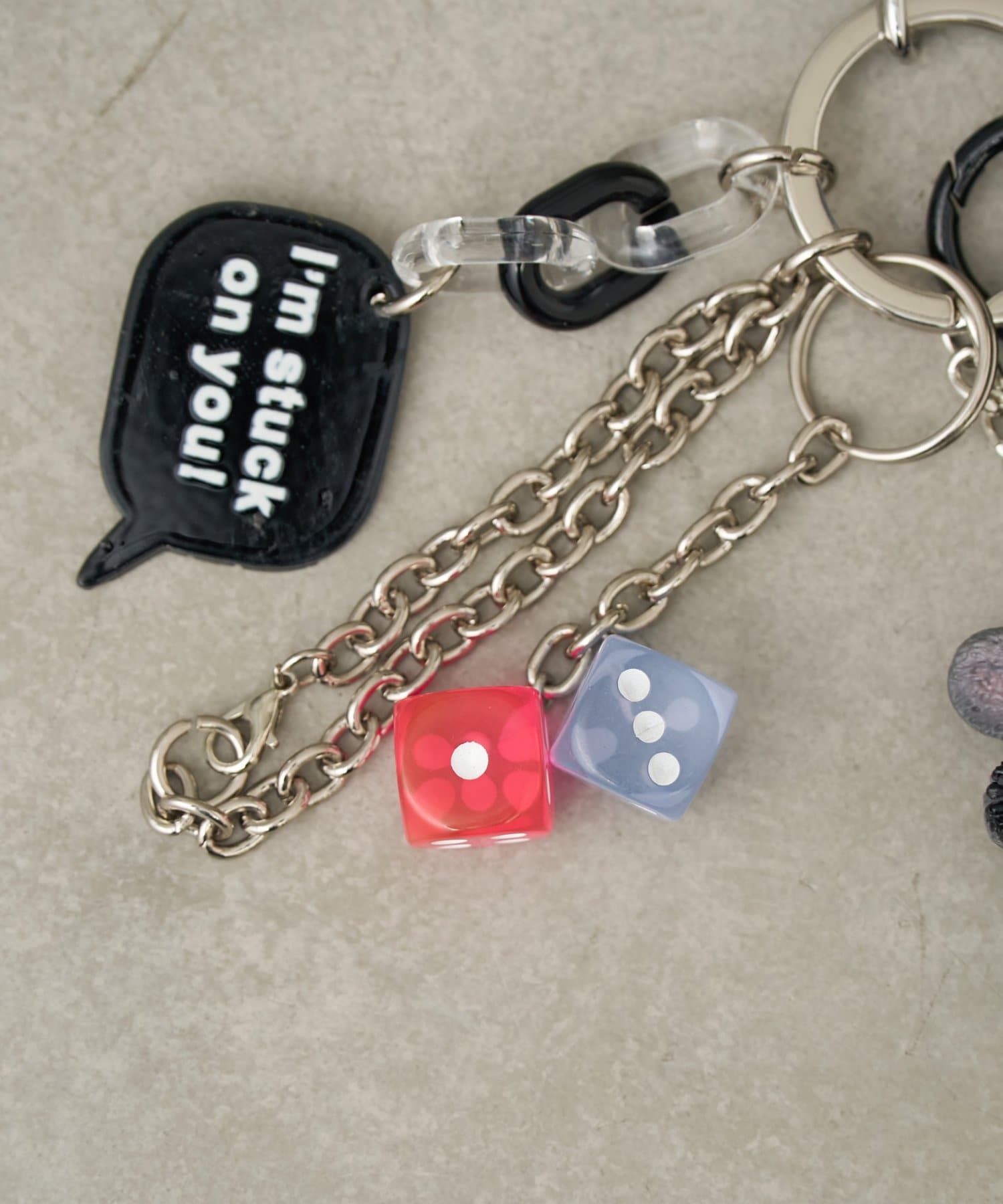 パーツは取り外し可能なので、外して他のキーホルダーにつけたり、反対にお手持ちのパーツをつけ足してもっとジャラジャラにするのも◎